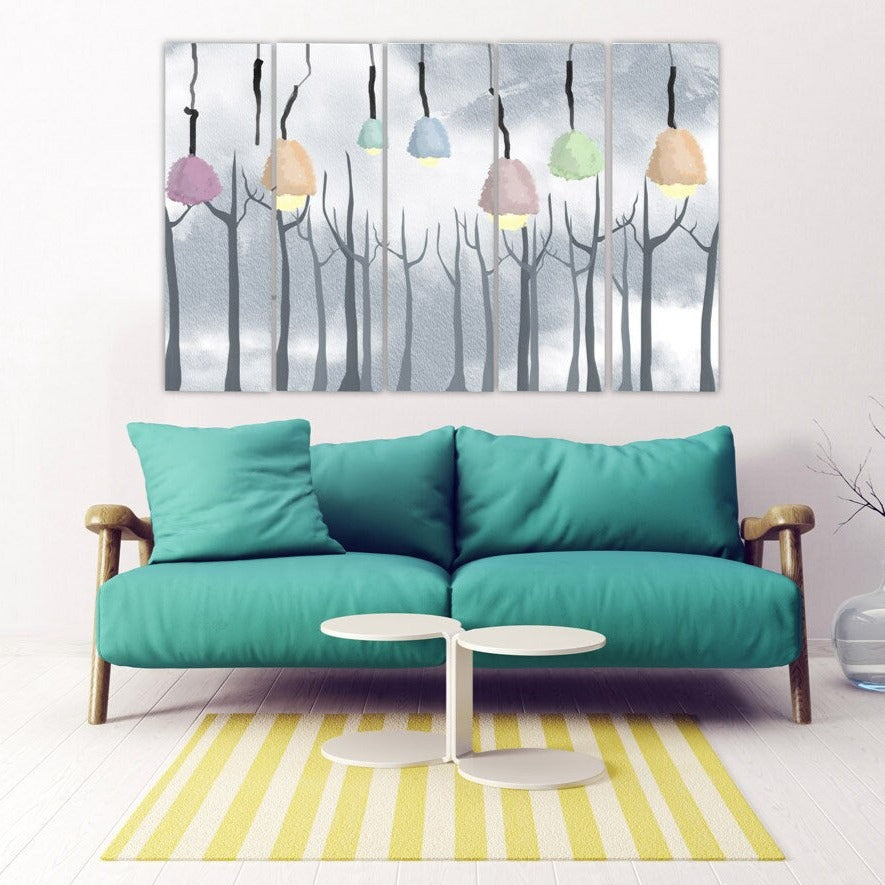 •Die Größe eines Gemäldesets, das aus mehreren Tafeln besteht, wird berechnet, indem die Tafeln zusammengezählt werden. Es wird empfohlen, solche Sets mit einem Abstand von 1–2 Zoll zwischen den Tafeln an der Wand anzubringen. Je größer die Bildelemente, desto größer ist der zulässige Abstand zwischen ihnen.