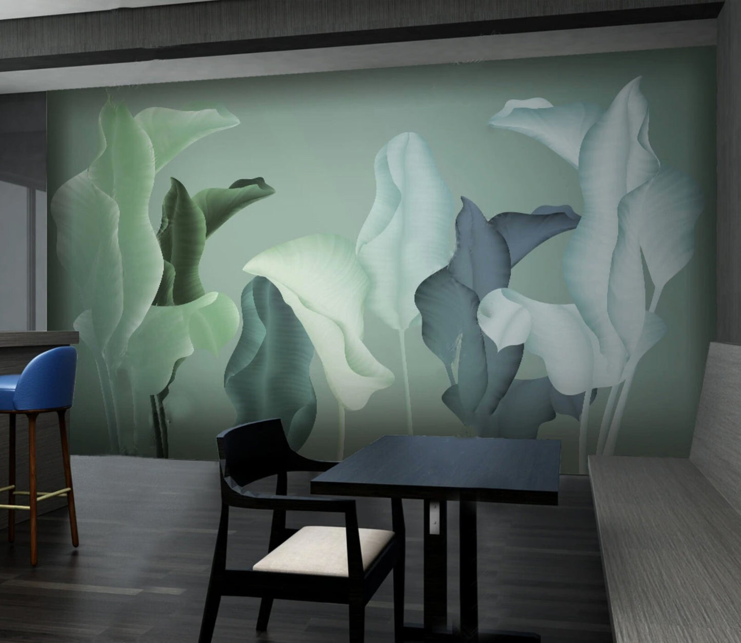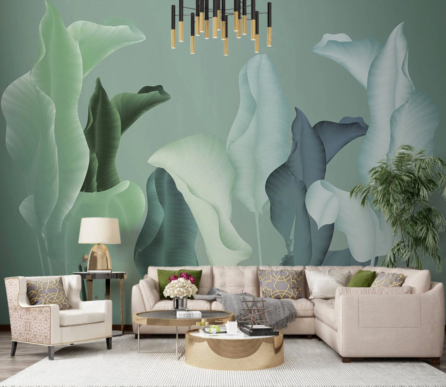 Kräuterdrucke zum Abziehen und Aufkleben, Wandkunst, selbstklebendes Wandbild, tropische Kunst, Wanddekoration für Zuhause, strukturierte Tapete, grüne Aquarellblätter, ClipArt