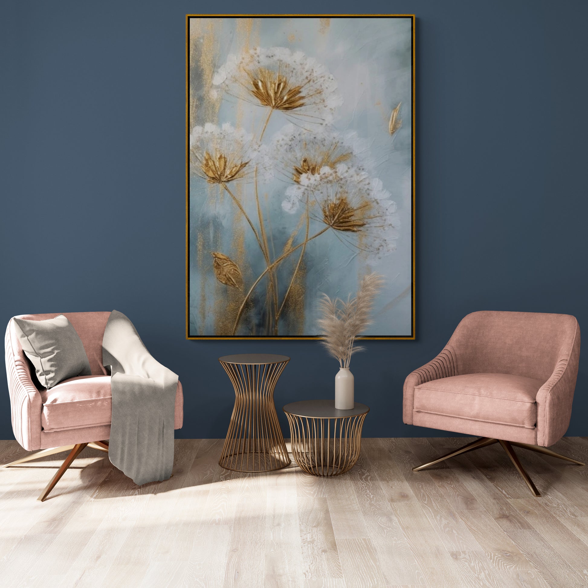 Große Pusteblumen-Wandkunst, gerahmter Blumen-Leinwanddruck, bedruckte Blumen-Wandkunst, Wandkunst mit schwebendem Rahmen, Leinwanddruck für Wohnzimmer