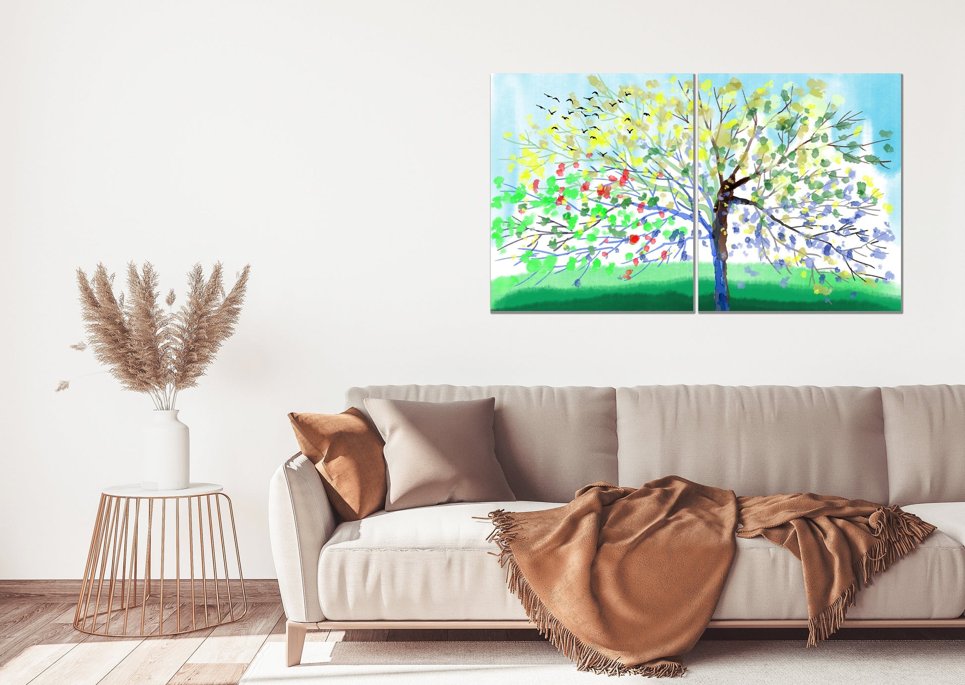 Wandkunst mit 4 Jahreszeiten-Baum, Vier-Jahreszeiten-Baum, große Leinwandkunst, Leinwandgemälde, mehrteilige Wandkunst, extra große Wandkunst