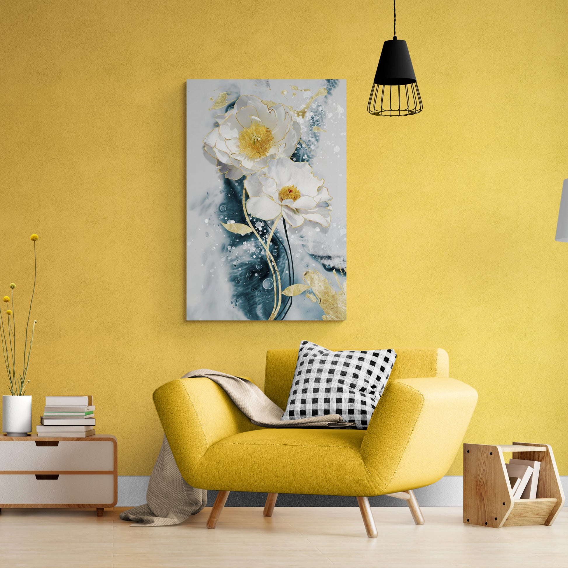 Diese florale Wandkunst, zarte Blumenkunst, Leinwanddruck mit weißen Blumen, gerahmte botanische Kunst, weiß-blau-goldene florale Wandkunst, Geschenk für die Patentante, Schlafzimmerwandkunst spielt eine wichtige Rolle bei der Gestaltung der Atmosphäre und des Charakters Ihres Interieurs. Bilder verleihen jedem Raum Schönheit, Tiefe und Persönlichkeit. Gedruckte Bilder können zum zentralen Akzent im Raum werden, Blicke auf sich ziehen und das Interesse der Besucher wecken.