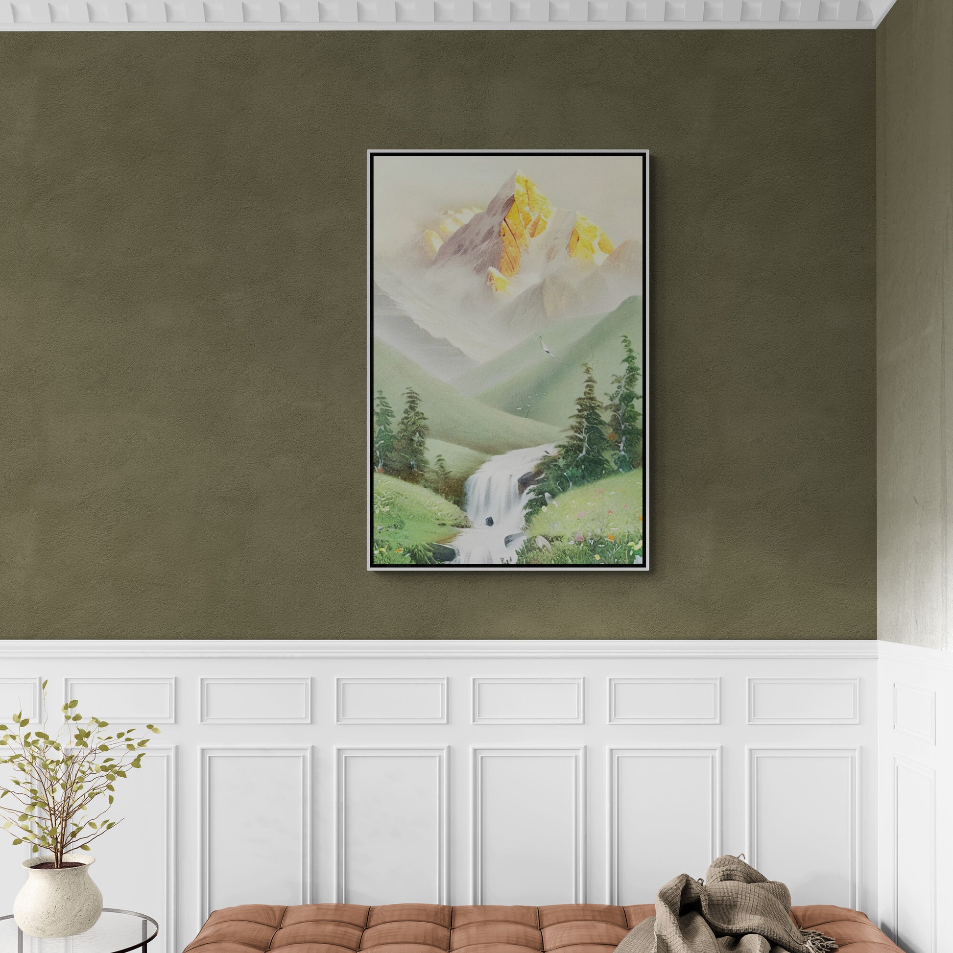 Berge Wandkunst, vertikales Panorama-Kunstwerk, goldener Berg-Leinwanddruck, Landschaftskunstwerk, verschneiter Bergkunstdruck, gerahmte Natur-Wandkunst, Muttergeschenk