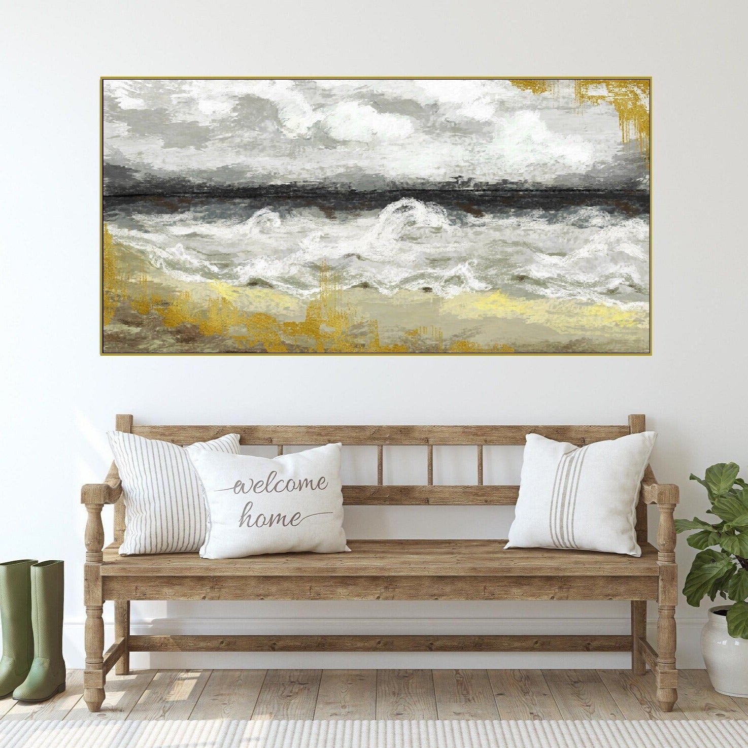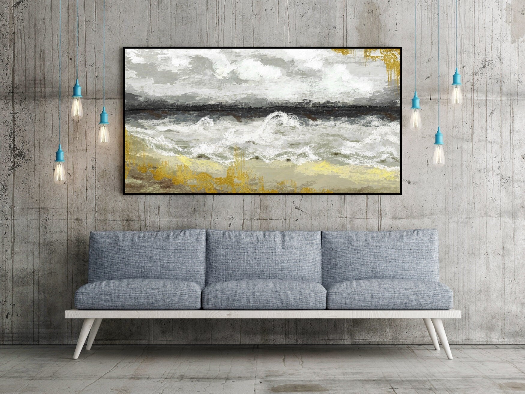 Abstrakte Leinwandkunst, extra großer Leinwanddruck mit schwebendem Rahmen, Wellen hängendes Wandkunstwerk, druckbare Meereswandkunst, Schlafzimmerkunstwerk