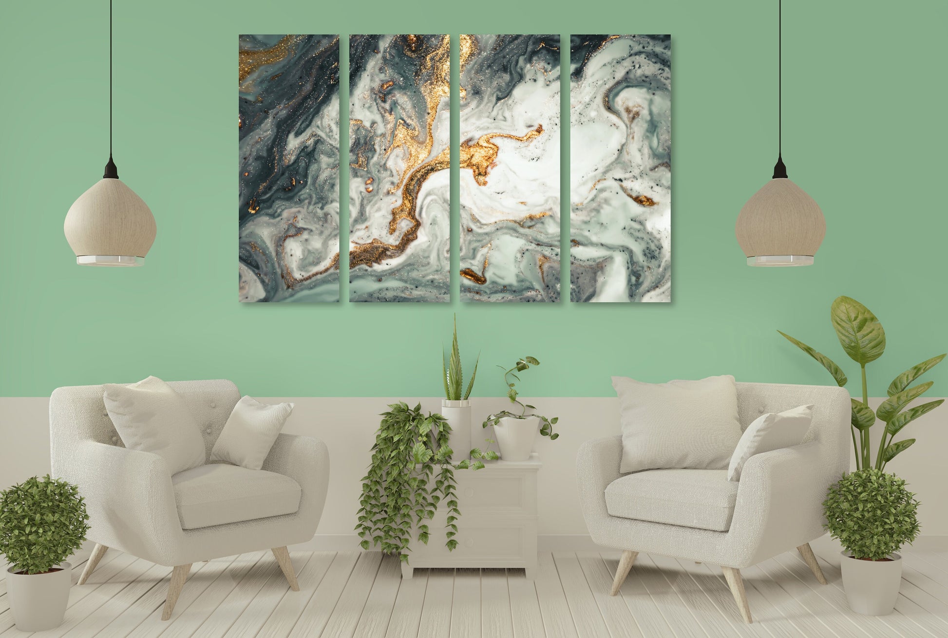 Abstrakte Leinwandkunst, Wanddekor-Leinwand aus goldenem und schwarzem Marmor, abstrakte Gemälde, mehrteilige Wandkunst, Marmor-Leinwand