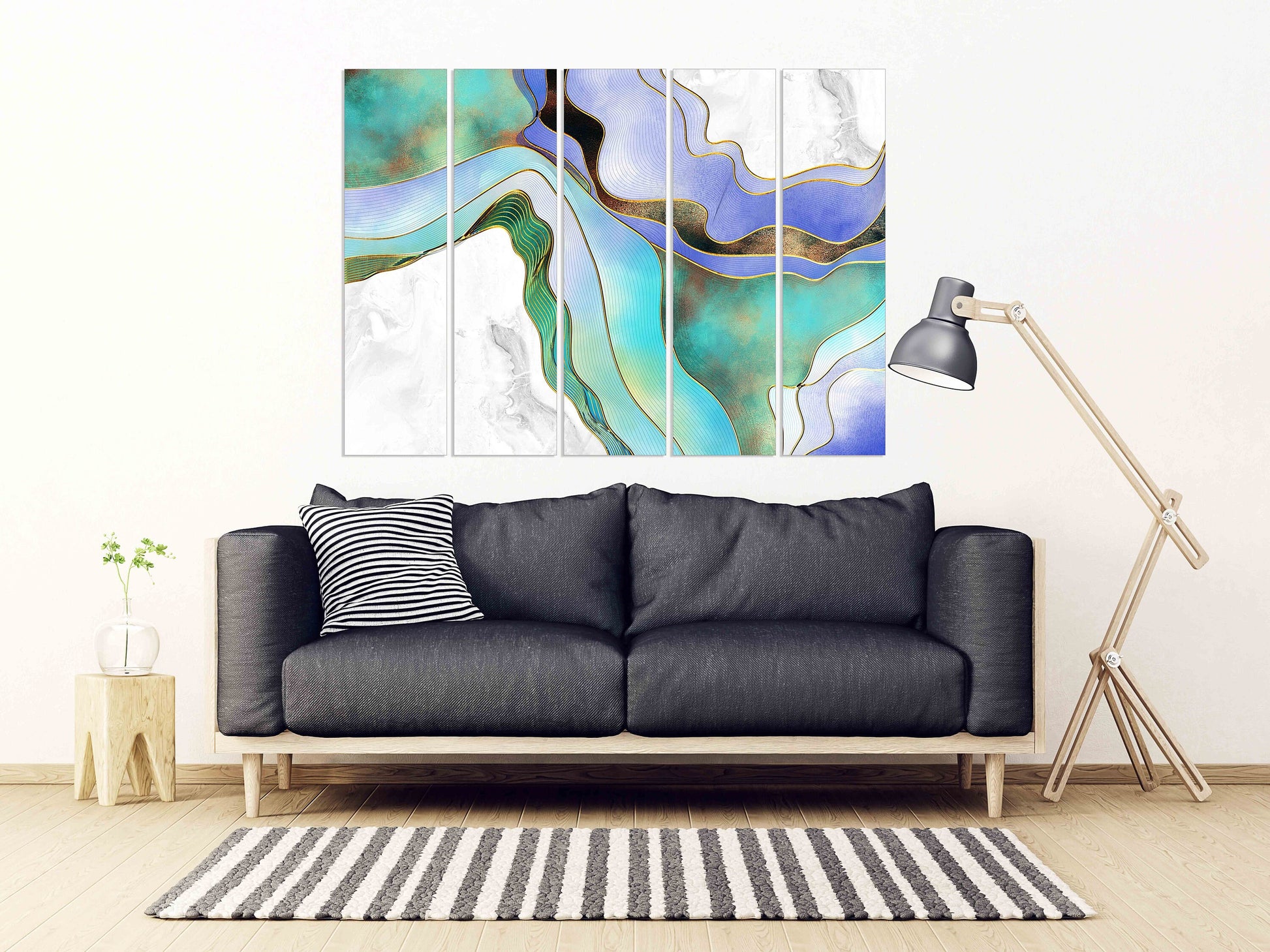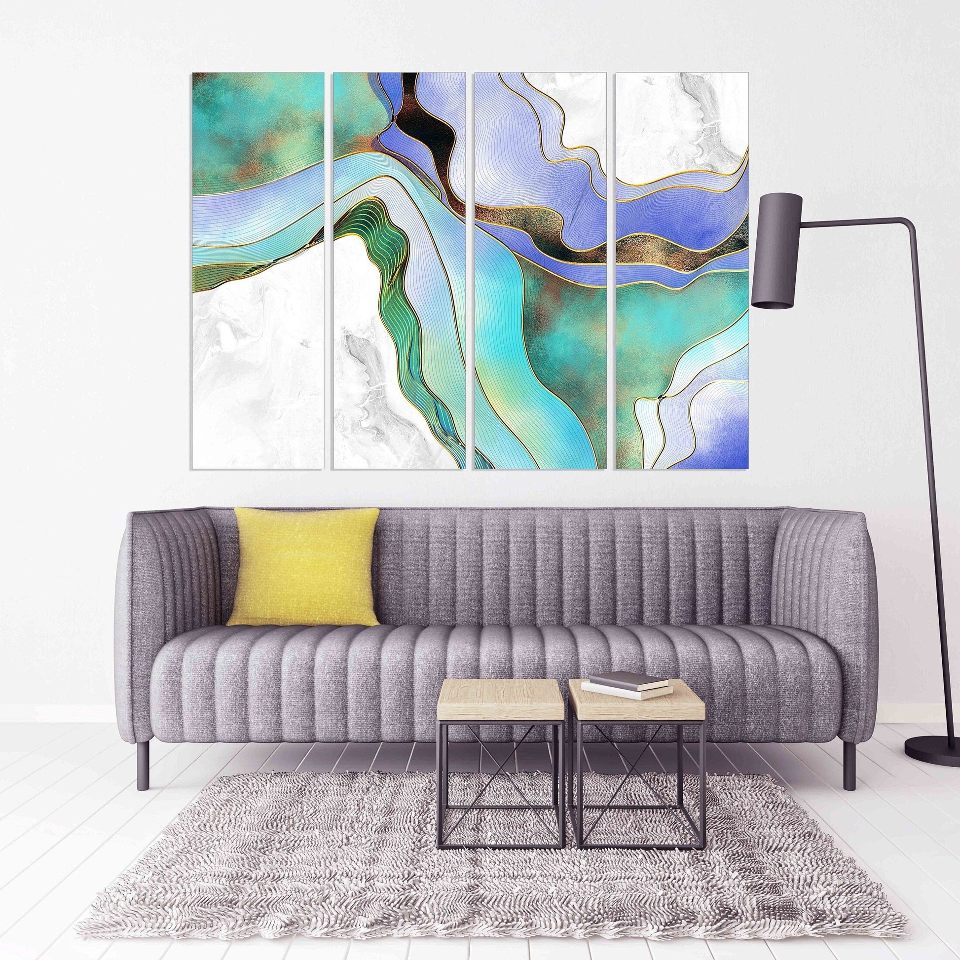 Abstraktes Wandkunstgemälde auf Leinwand, Bilderrahmen, extragroß, mehrteilige Wandkunst, abstrakter Druck, Wanddekoration, ruhige horizontale Kunst