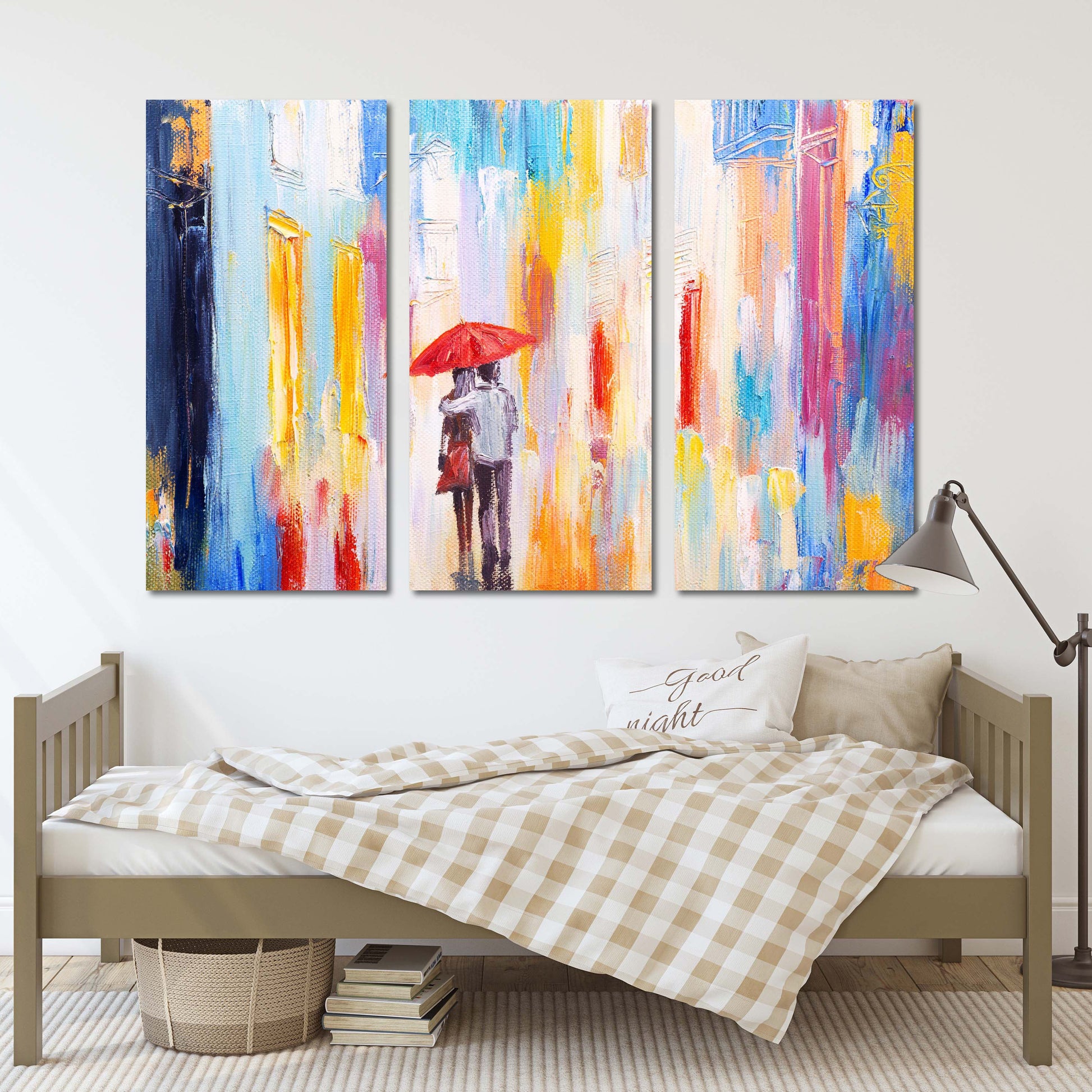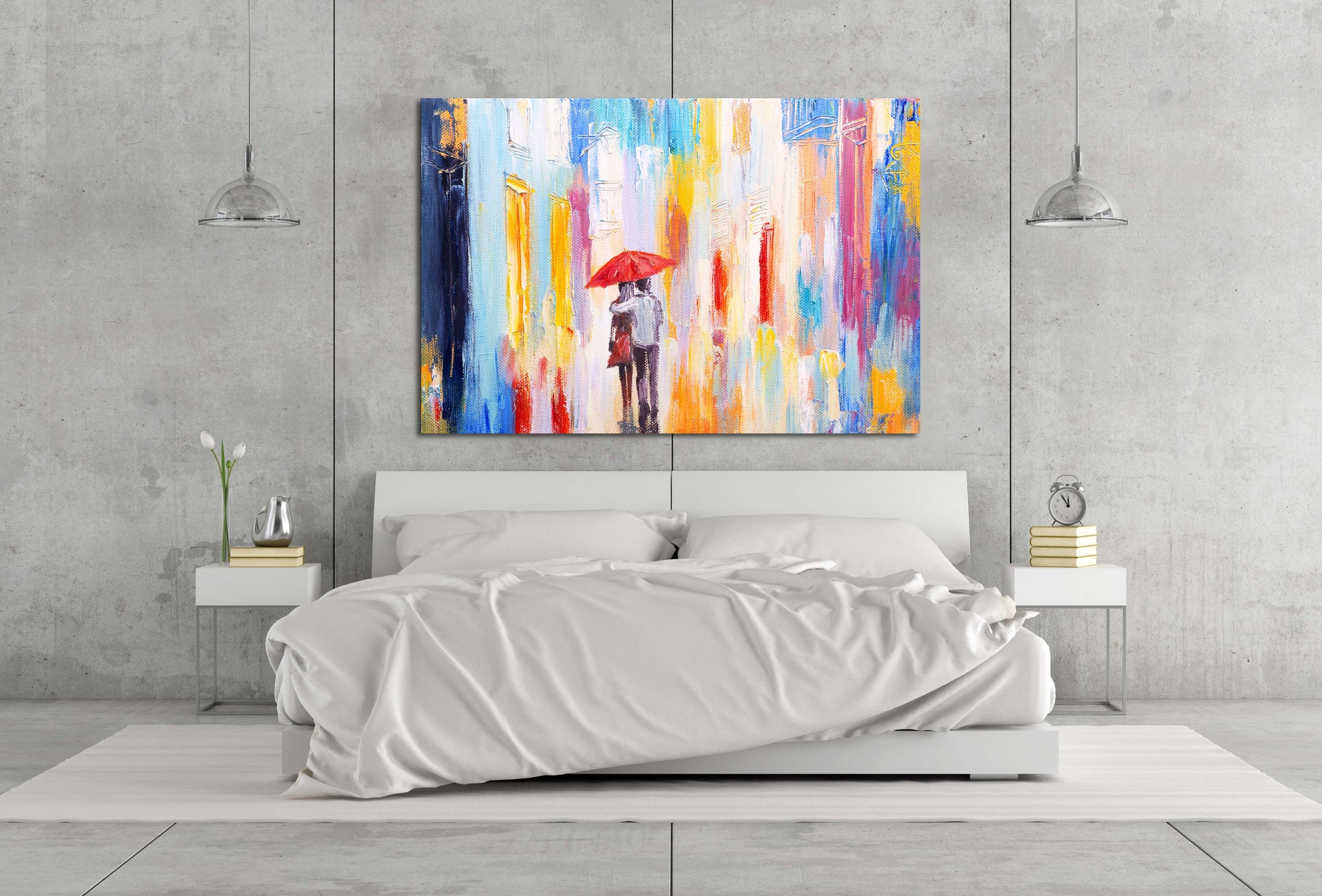 Abstraktes Liebespaar-Kunstwerk, Liebes-Wandbilder auf Leinwand, rote Regenschirmkunst, Valentinstagsgeschenk, druckbare abstrakte Kunstdrucke