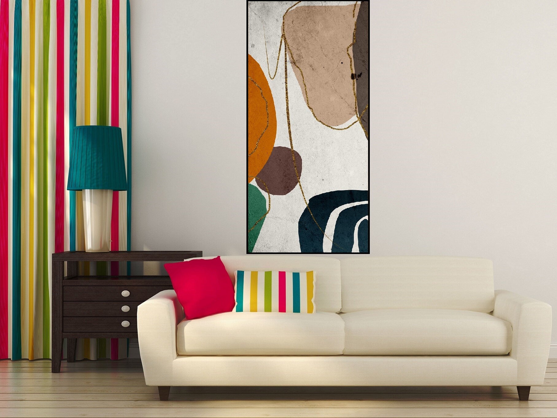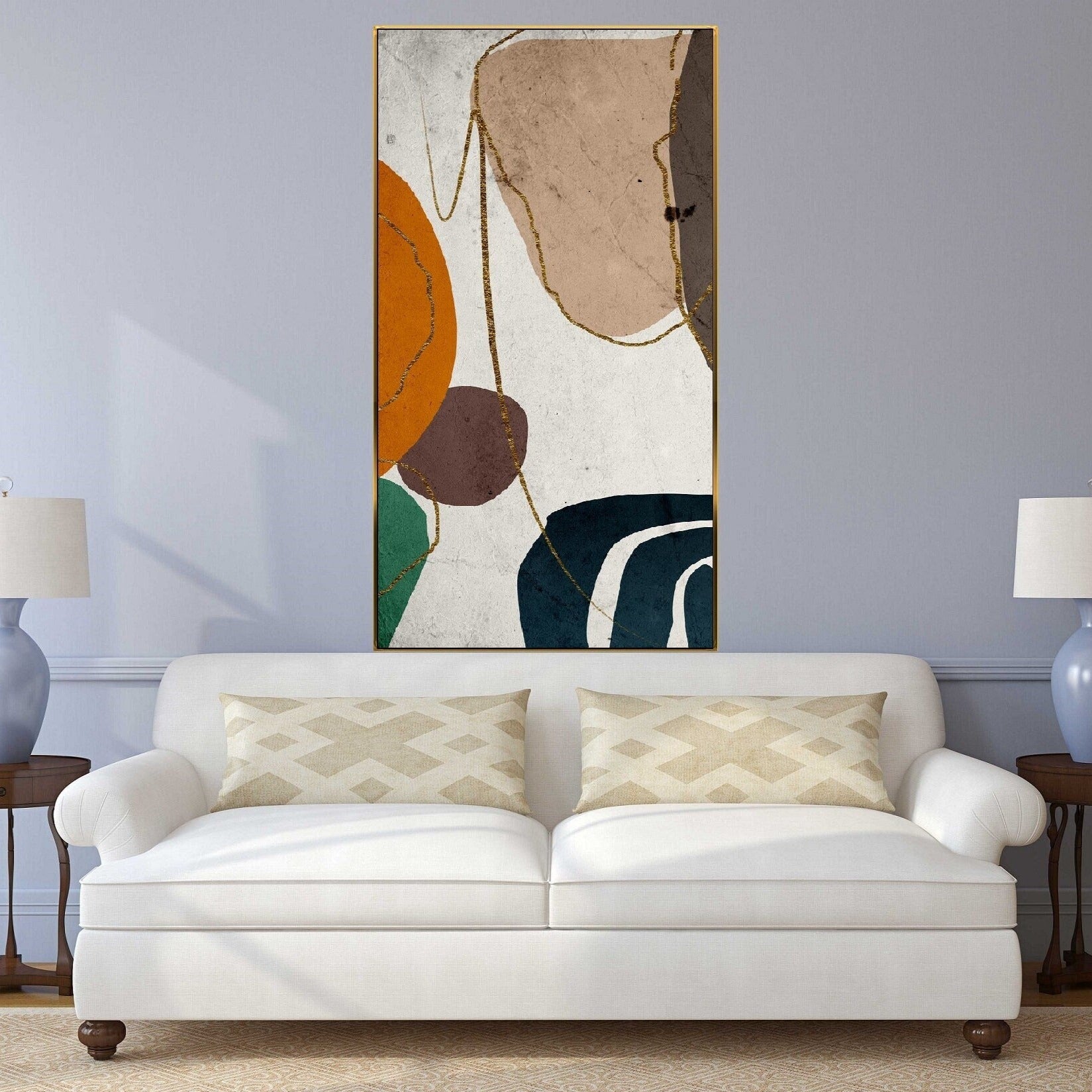 Abstrakte gerahmte Leinwand-Wandkunst, farbenfrohes vertikales Gemälde im Floater-Rahmen, extra große gerahmte Wandkunst für das Wohnzimmer, modernes abstraktes Kunstwerk