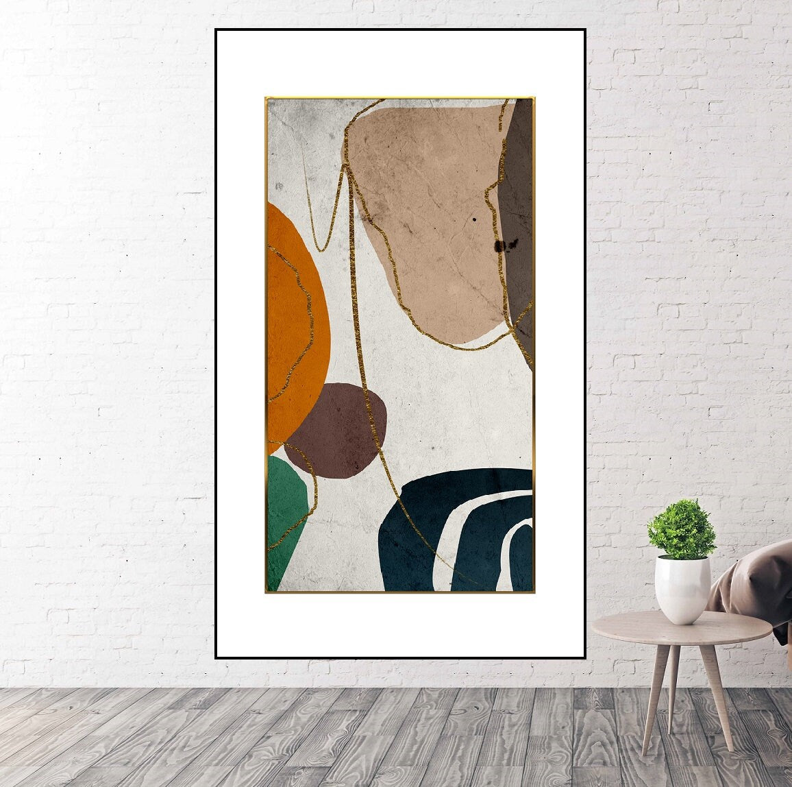 Abstrakte gerahmte Leinwandbilder, farbenfrohe vertikale Gemälde mit schwebendem Rahmen, extragroße gerahmte Wandkunst für das Wohnzimmer, moderne abstrakte Kunstwerke werden waagefertig geliefert und benötigen keine zusätzliche Befestigung.