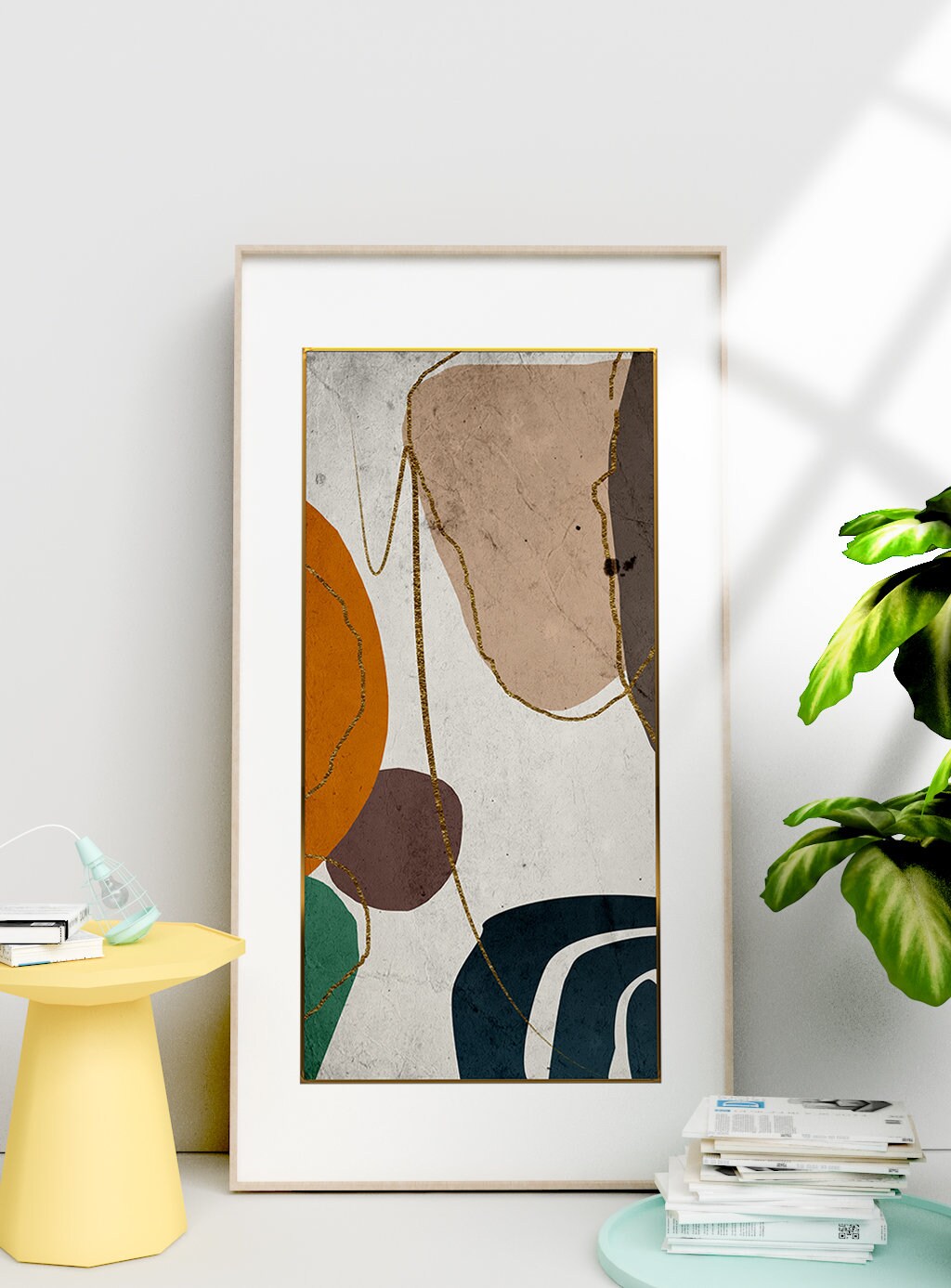 Abstrakte gerahmte Leinwand-Wandkunst, farbenfrohes vertikales Gemälde im Floater-Rahmen, extra große gerahmte Wandkunst für das Wohnzimmer, modernes abstraktes Kunstwerk