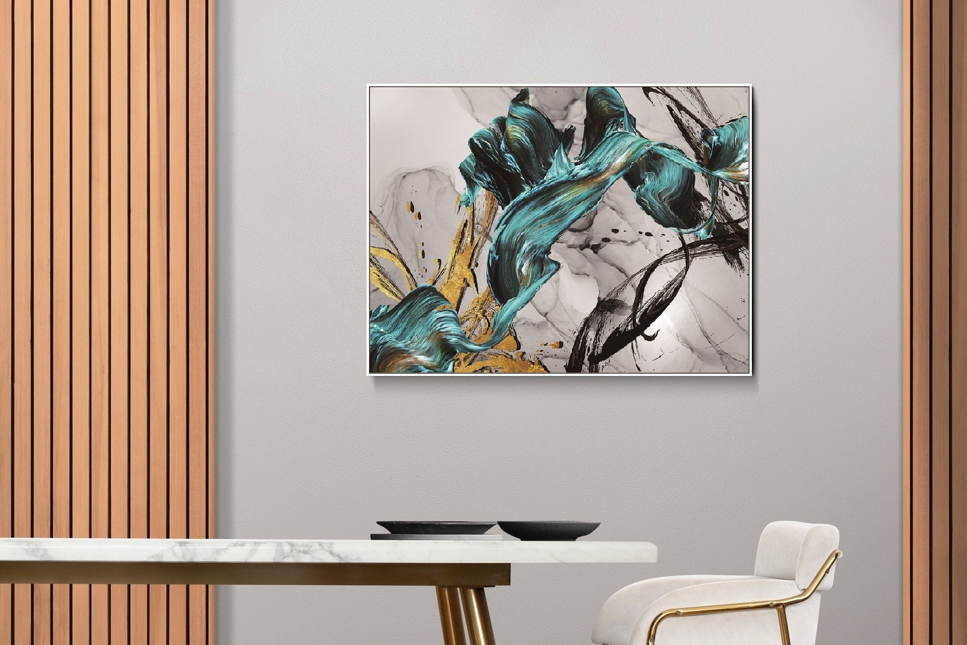 • Die typische Textur der Leinwand und die professionelle Positionierung auf einem Holzkeilrahmen machen ein Meisterwerk wirklich stilvoll und ästhetisch.