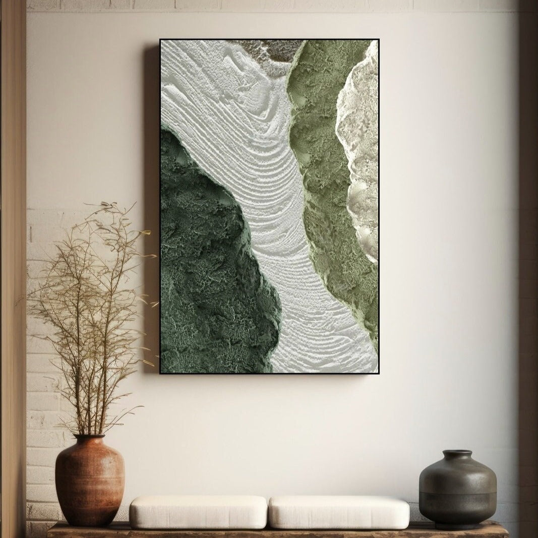Abstrakte Wandkunst, grüner Leinwanddruck mit schwebendem Rahmen, Ölgemälde, große druckbare Wandkunst, hängende Wanddekoration für Wohnzimmer