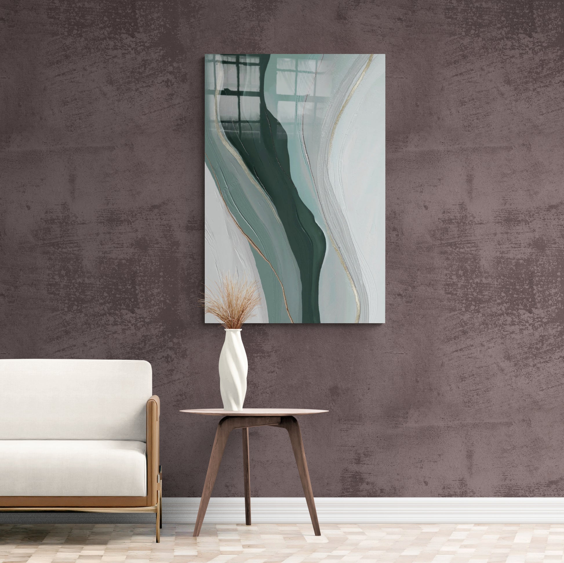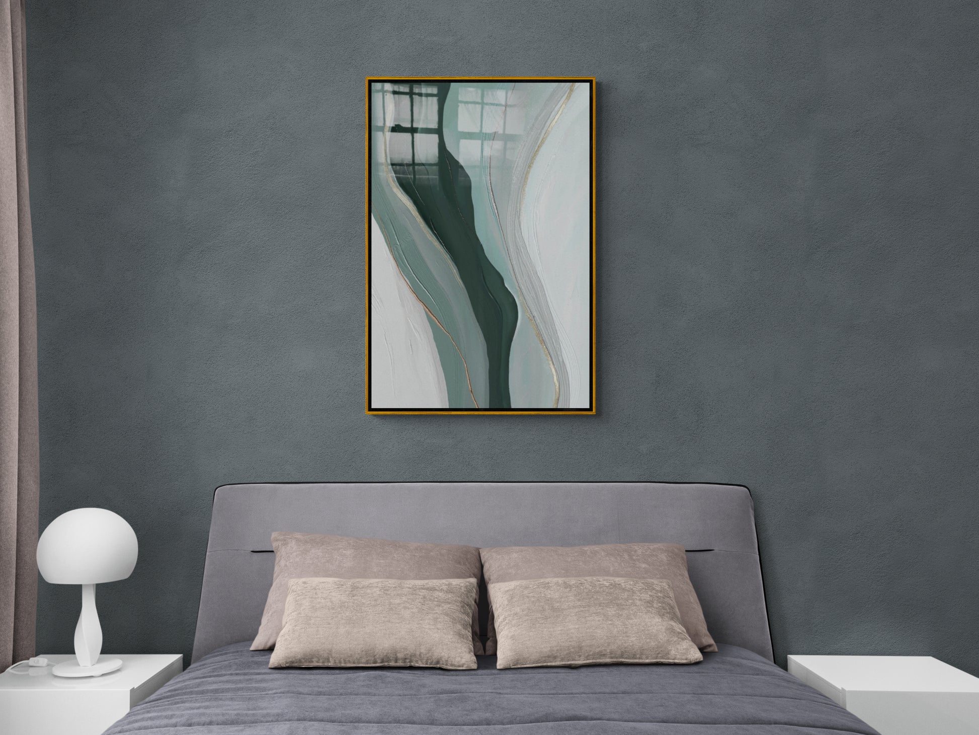 Abstrakte Wandkunst, grün-weißer Leinwanddruck, maskuline Wandkunst, zeitgenössischer Kunstdruck, Rahmenkunstwerk, Wandkunst im Aluminiumrahmen, weißes Rahmenkunstwerk, Geschenk für ihn