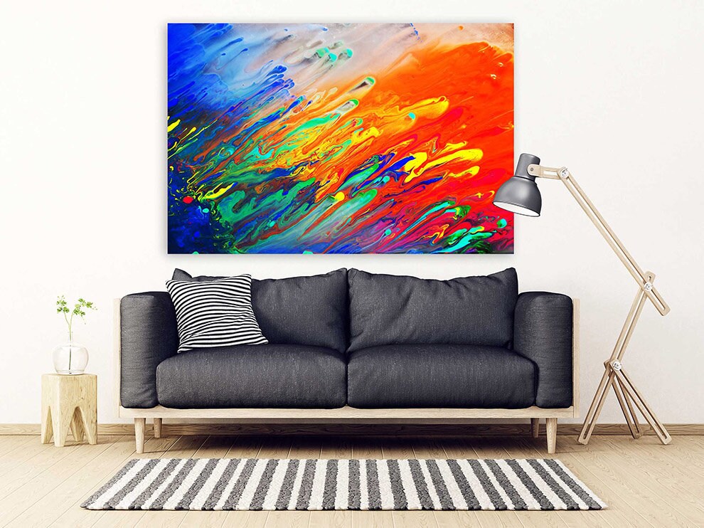 Wir drucken unsere Bilder auf unseren eigenen hochwertigen Geräten. Wir können sie nach Belieben personalisieren. Die Bilder sind auf einen Holzrahmen gespannt.