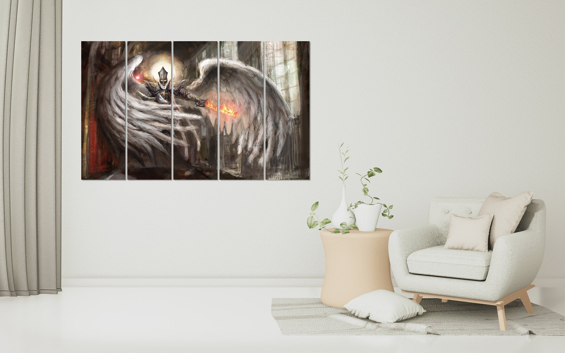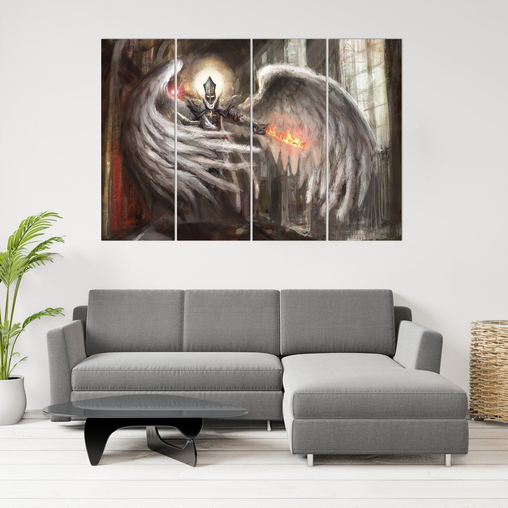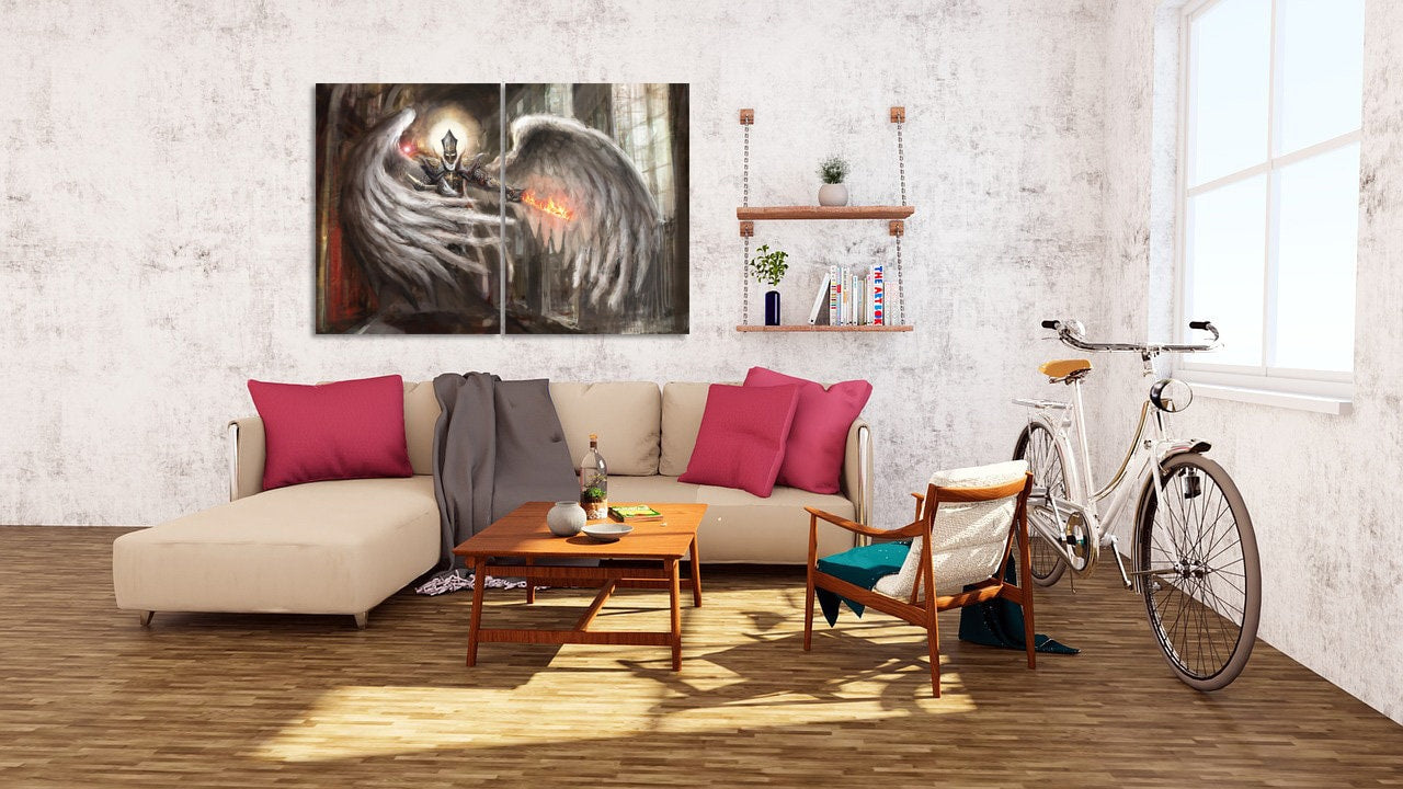 Wandkunst mit Engelrittern, Anime-Leinwandgemälden, Schwertkunst, Fantasy-Kunstdrucken und Dark-Fantasy-Wandbildern wird waagefertig geliefert und erfordert keine zusätzliche Registrierung.