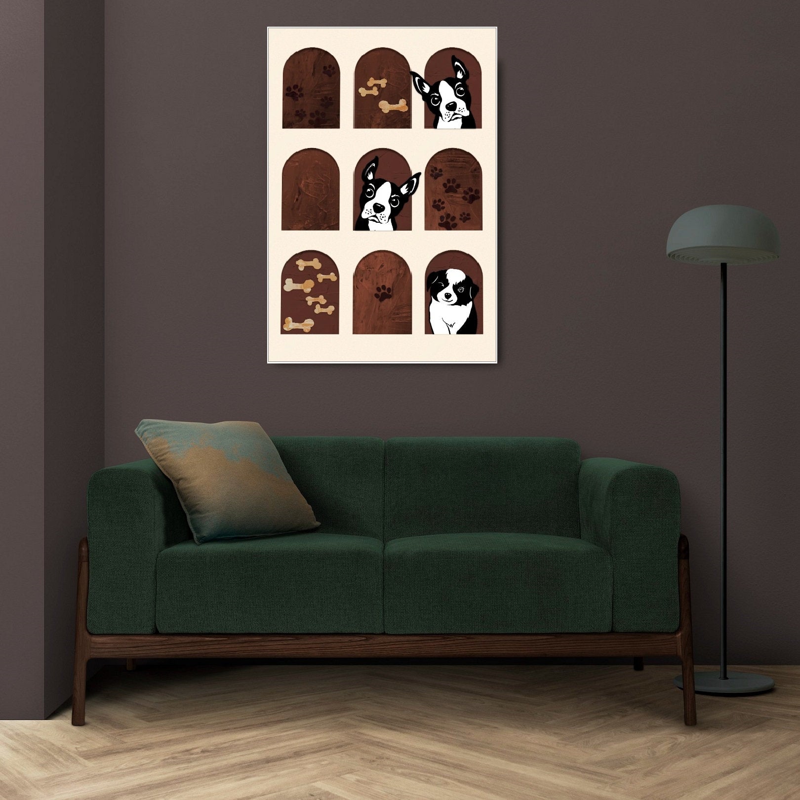 Leinwandbild Tiere, großes gerahmtes Hundebild, druckbare moderne Wanddekoration, schwebender Rahmen, Wohnzimmerbild, schwarzer Hundedruck