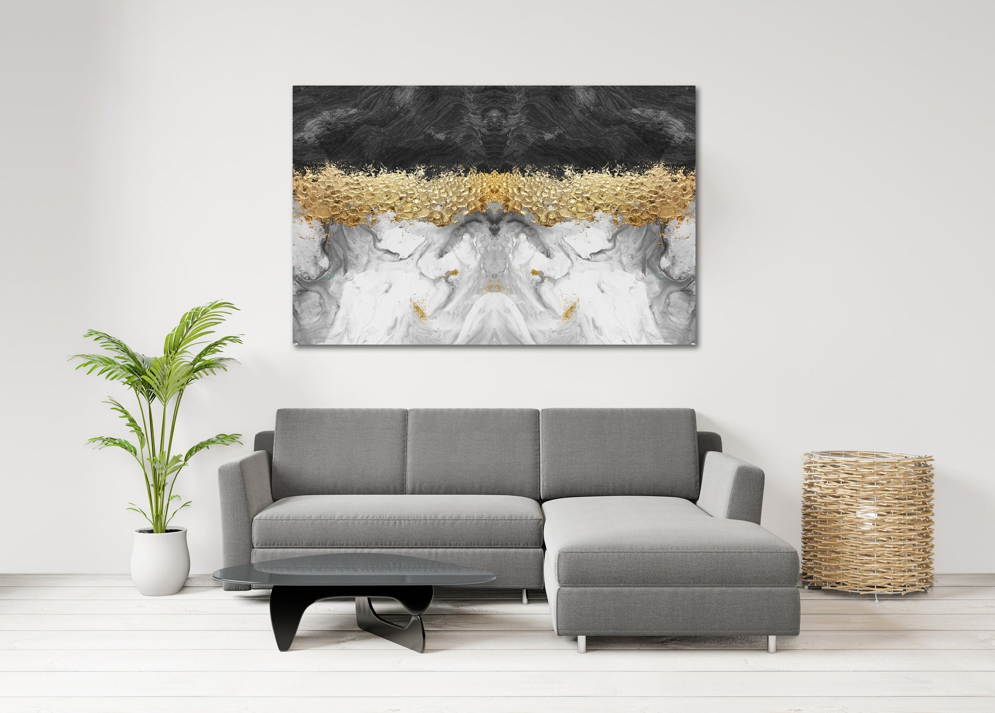 Schwarz-weiß-goldene abstrakte übergroße Wandkunst, modernes extra großes Leinwandgemälde
