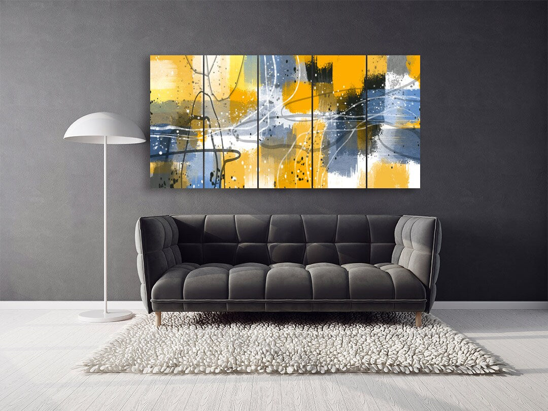 •Die Größe eines Gemäldesets, das aus mehreren Tafeln besteht, wird berechnet, indem die Tafeln addiert werden. Es wird empfohlen, solche Sets mit einem Abstand von 2,5–5 cm zwischen den Paneelen an der Wand zu platzieren. Je größer die Bildelemente, desto größer ist der zulässige Abstand zwischen ihnen.