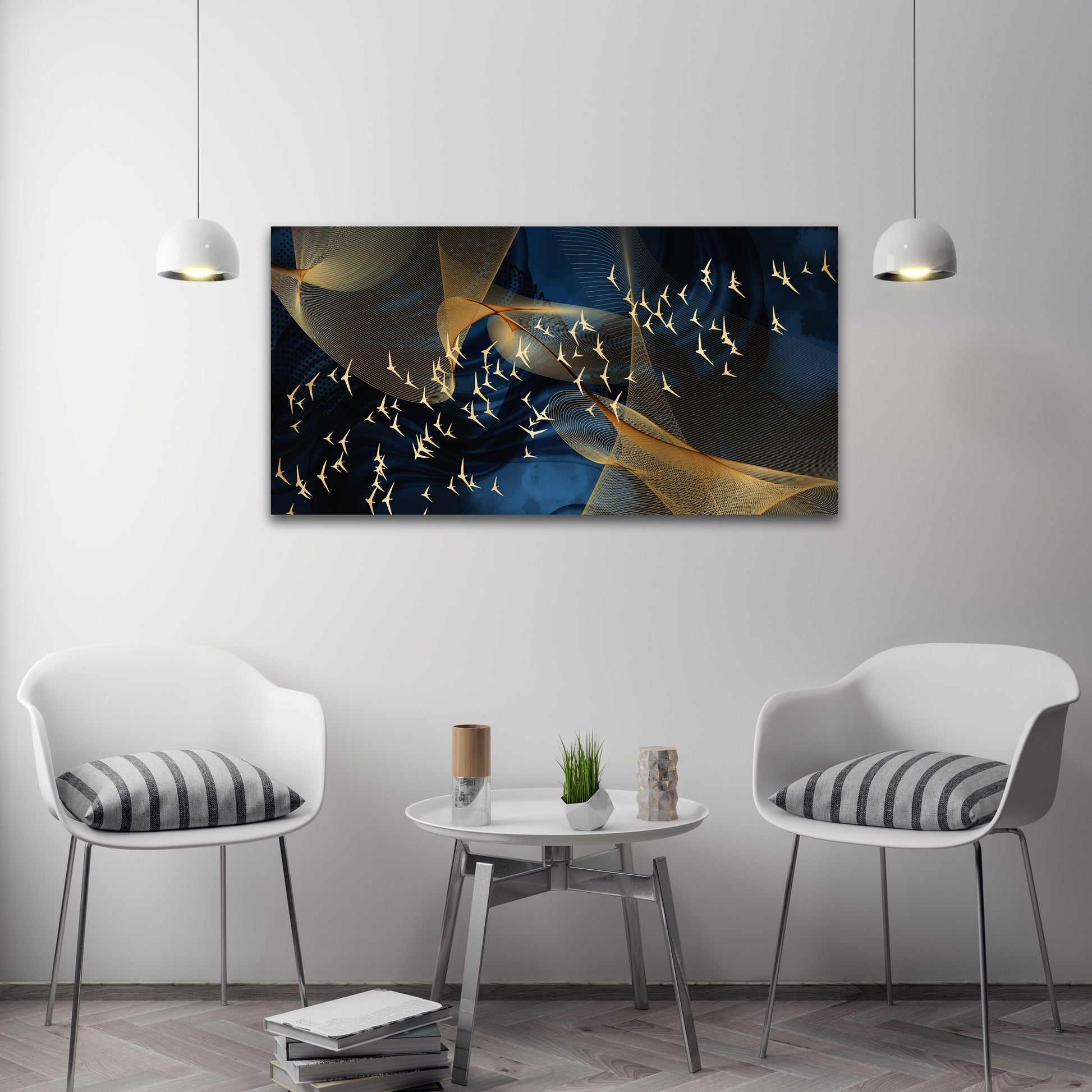 Blau-goldenes abstraktes Gemälde, trendiger abstrakter Leinwand-Wandkunstdruck, mehrteiliges extra großes Wandbild