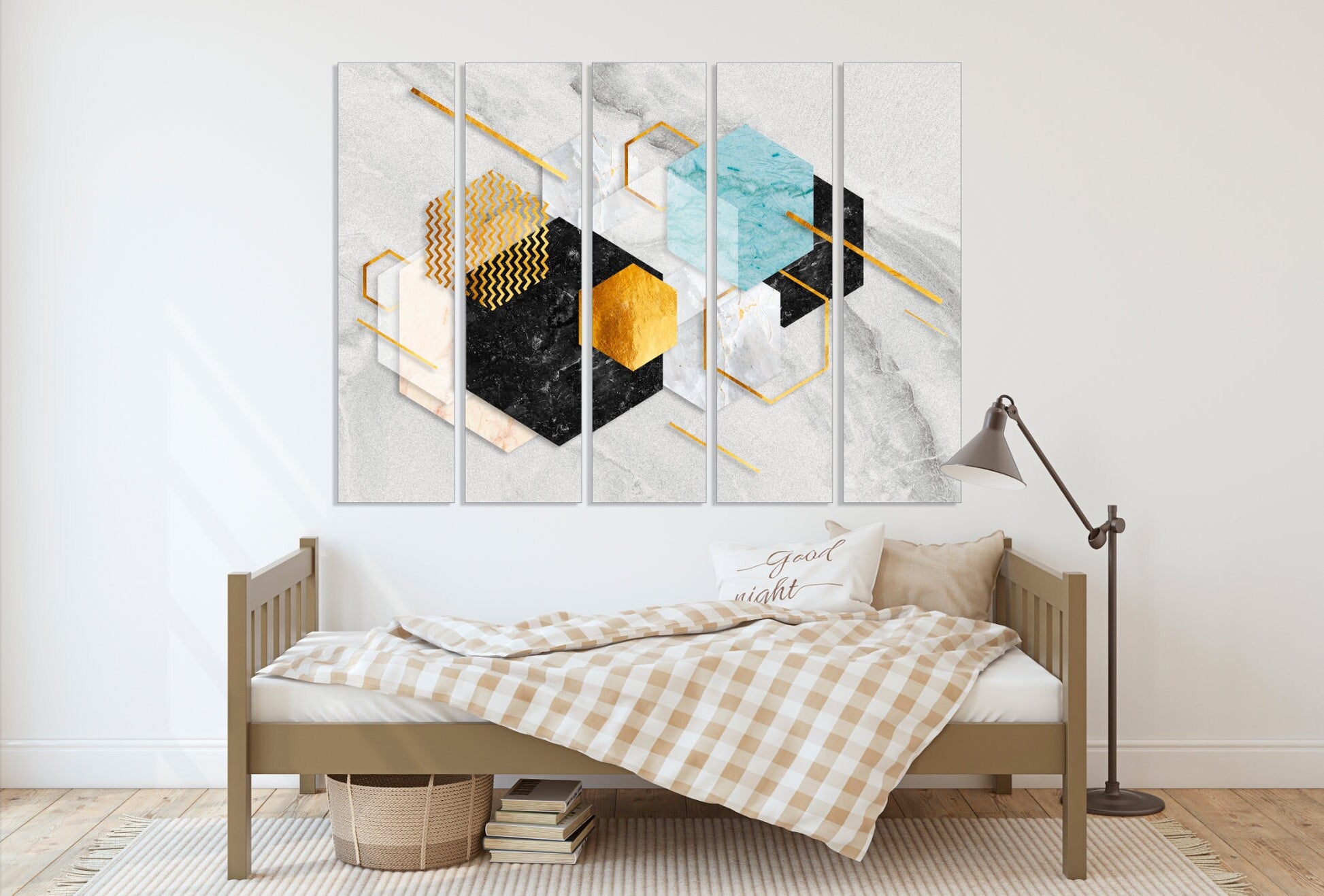 Blau-goldene Wandkunst, Marmor Minimalismus abstrakte Wandkunst, geometrischer Kunstdruck, Trend-Wanddekor, extra großes Leinwandgemälde