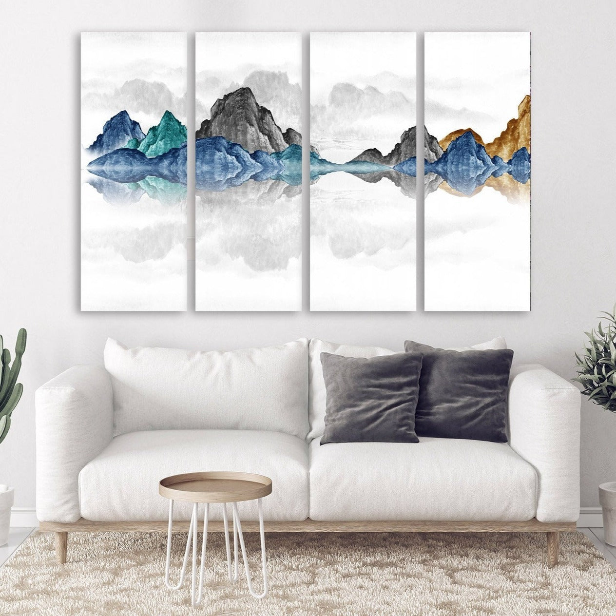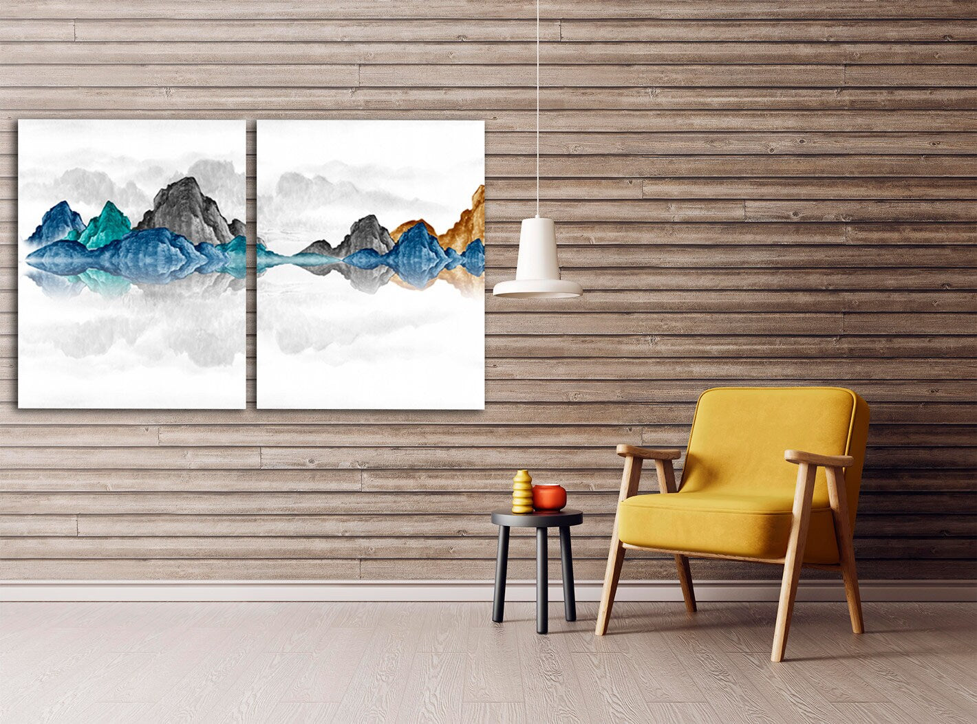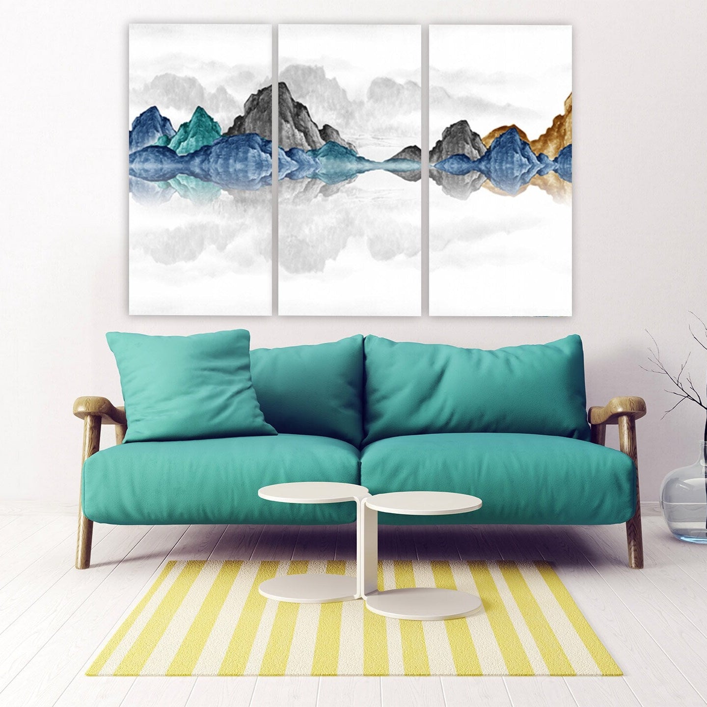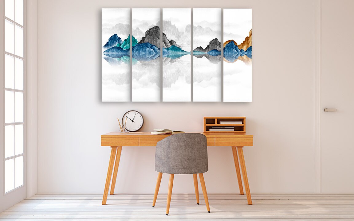 •Die Größe eines Gemäldesets, das aus mehreren Tafeln besteht, wird berechnet, indem die Tafeln zusammengezählt werden. Es wird empfohlen, solche Sets mit einem Abstand von 1–2 Zoll zwischen den Tafeln an der Wand anzubringen. Je größer die Bildelemente, desto größer ist der zulässige Abstand zwischen ihnen.