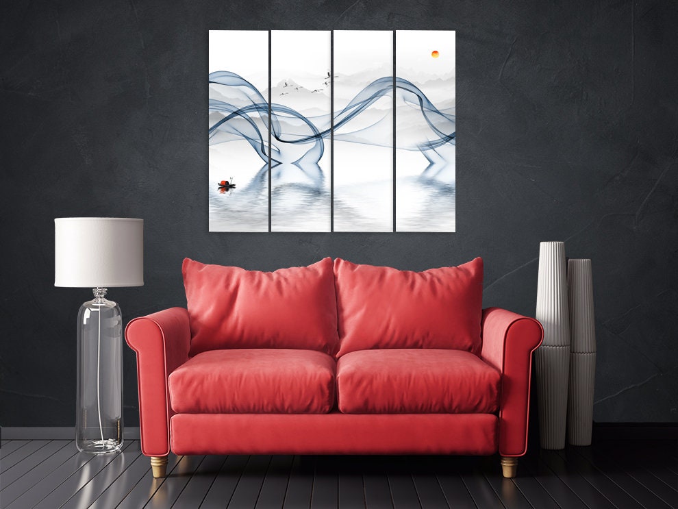 Blaue Welle abstrakte abstrakte Wandkunst Gemälde auf Leinwand, Wohnwanddekor, Leinwandgemälde, asiatische Wandkunst große Wandkunst abstrakte Malerei