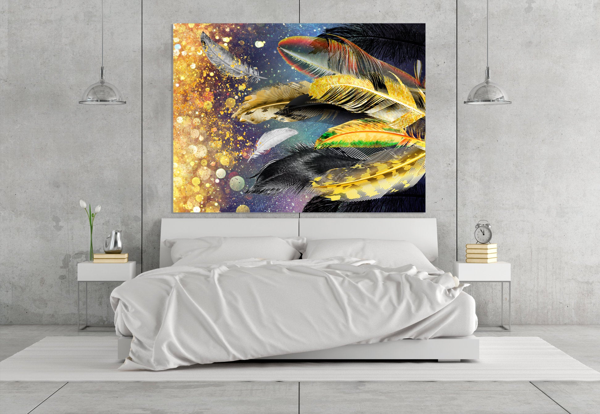 Boho Feder Wandkunst, trendige abstrakte Drucke auf Leinwand, extra große moderne Wandkunst, Badezimmer Wanddekoration
