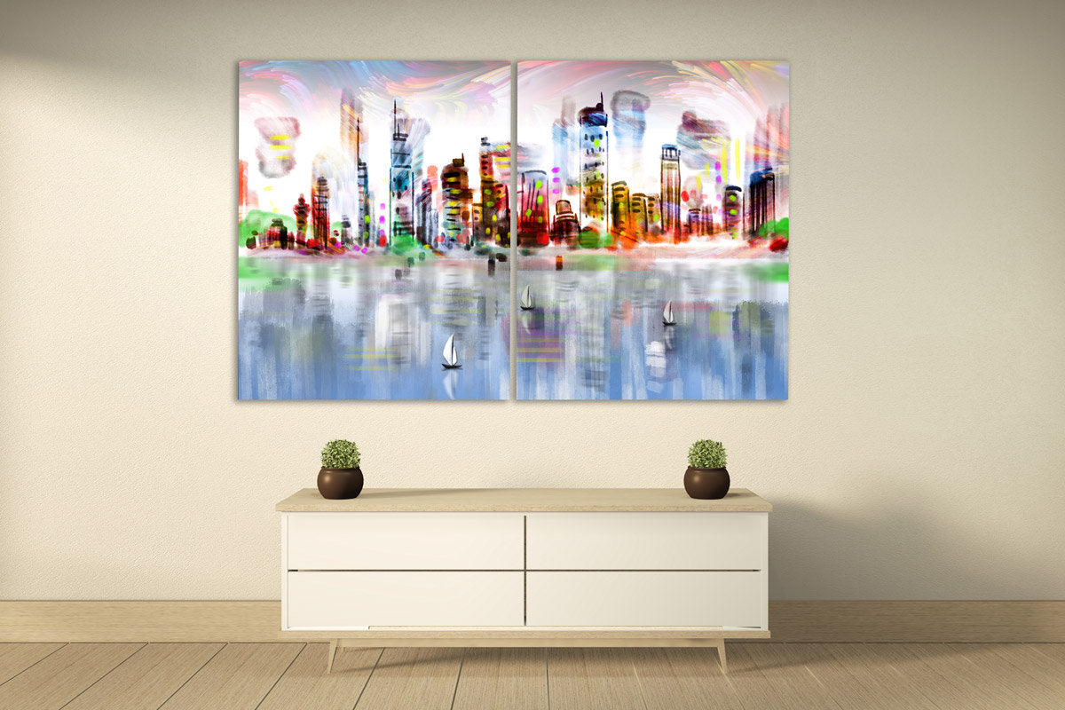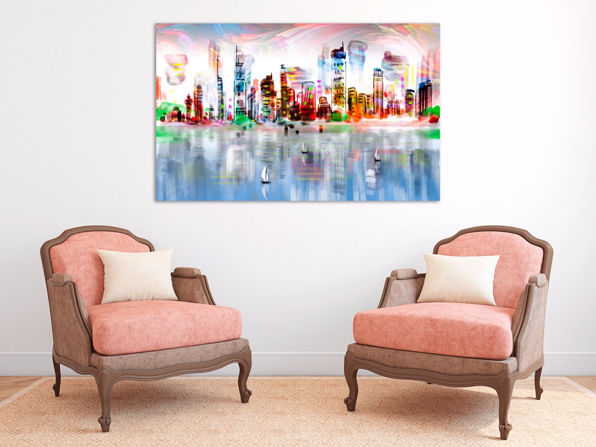 Helle Stadt Wandkunst Ölgemälde Leinwanddruck Große Wanddekoration Wohnzimmer modern