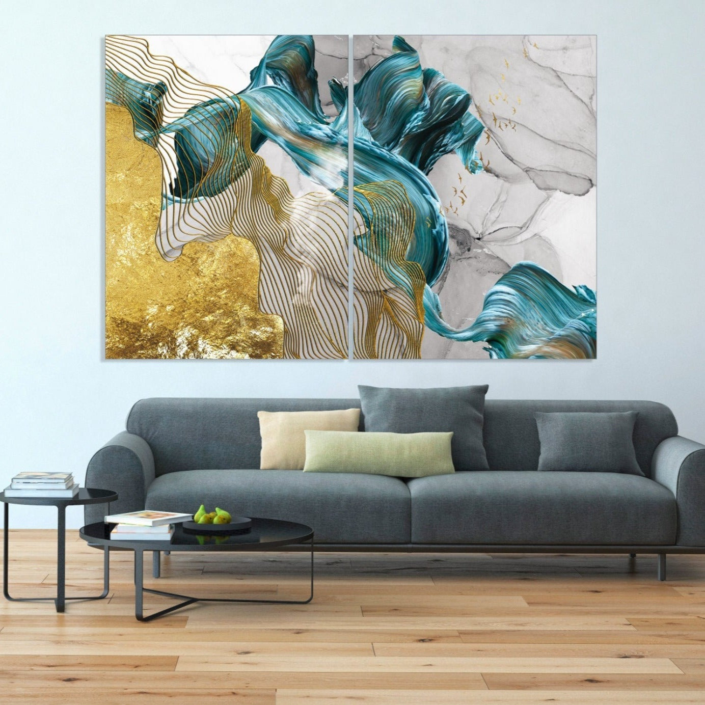Leinwandgemälde, abstrakte Wandkunst, Bilderrahmen, extra große mehrteilige Wandkunst, abstrakter Druck, Wanddekoration, ruhige horizontale Kunst