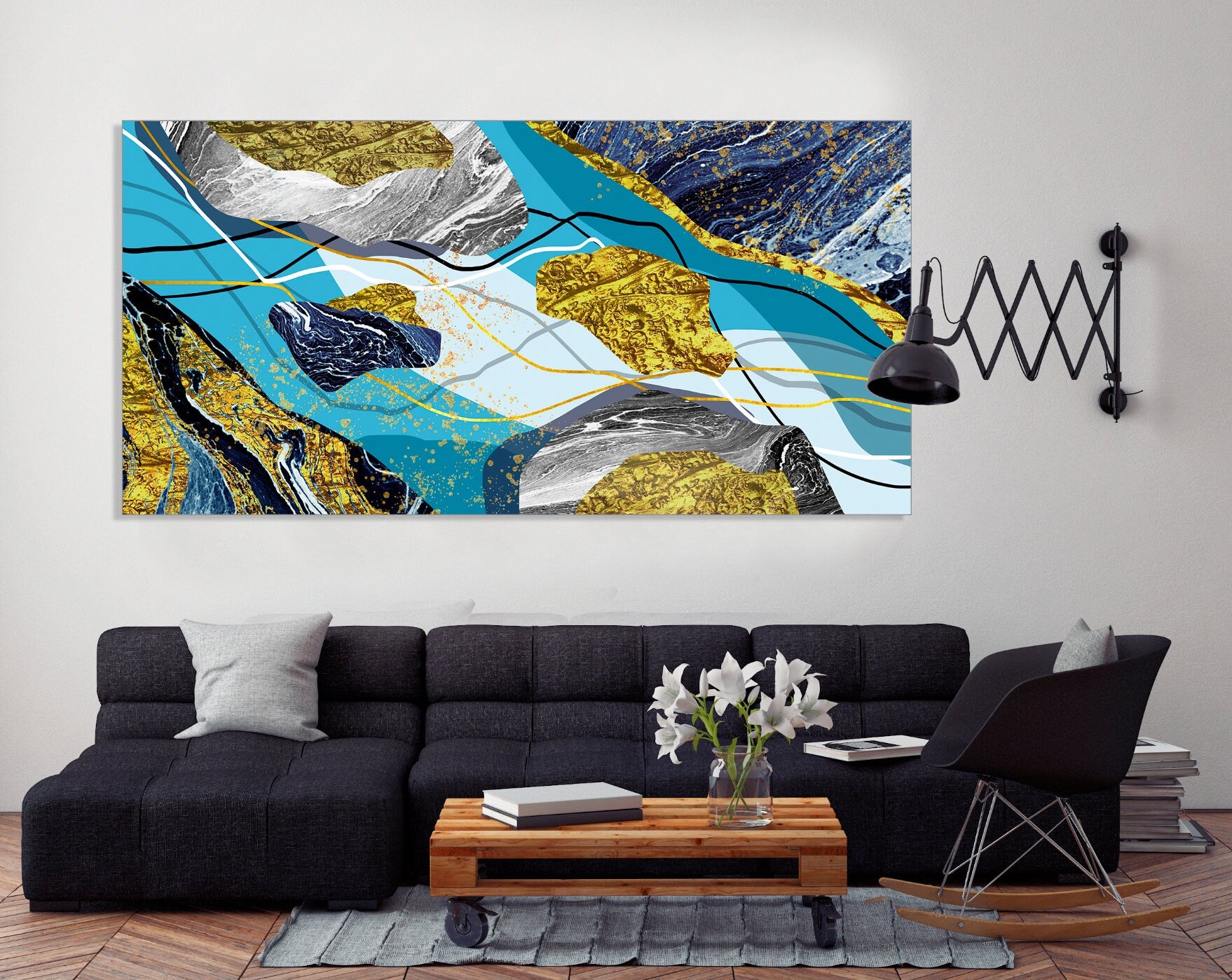 Leinwand-Wandkunst, modernes abstraktes Leinwandgemälde, leuchtende Wandkunst, mehrteiliger Leinwanddruck, Raumwanddekoration, extragroße Wandkunst
