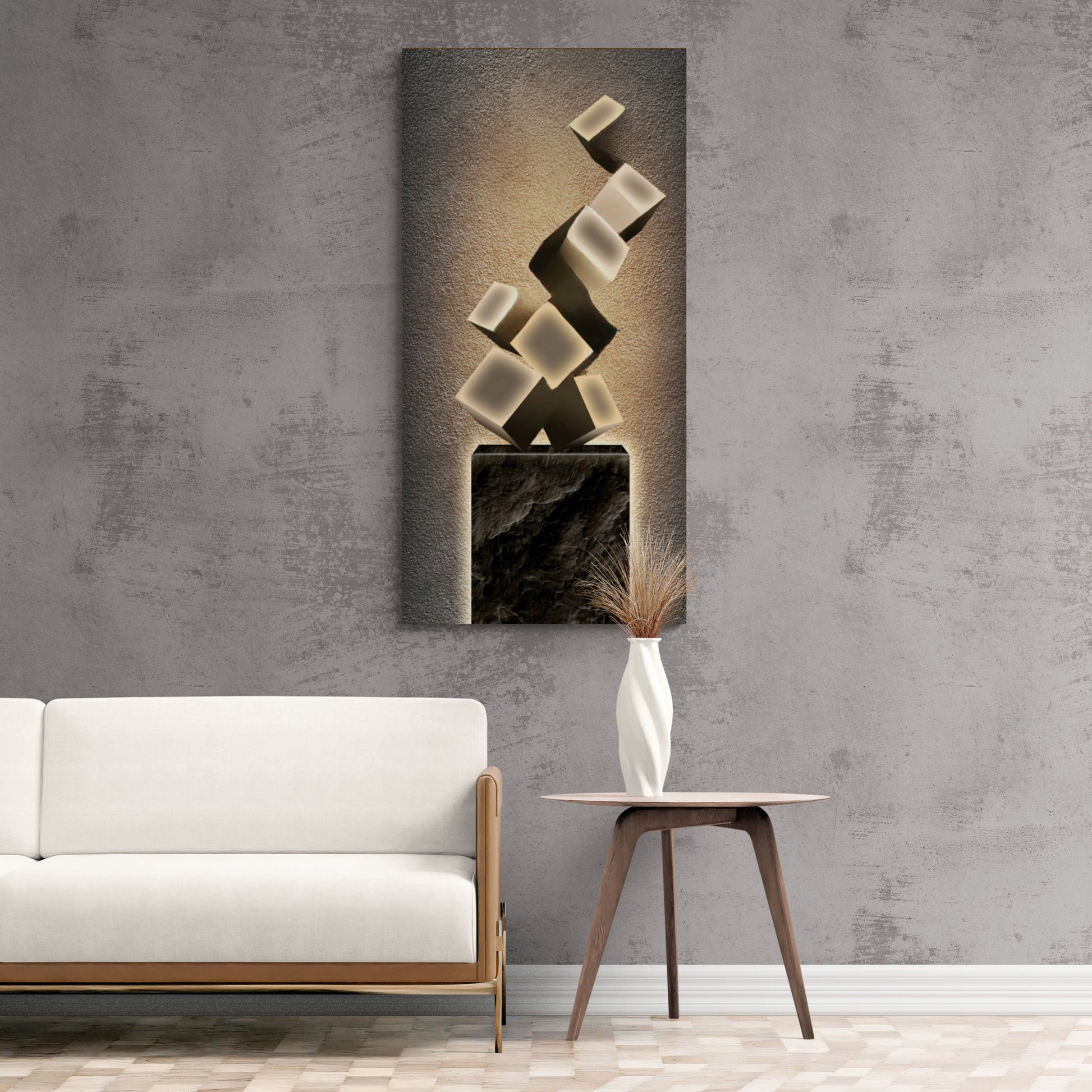 Dieses abstrakte Wandbild, geometrischer Kunstdruck, moderner gerahmter Leinwanddruck, 3D-Wandbild mit Würfeln, Wohnzimmer-Leinwanddruck, Geschenk für ihn, trägt maßgeblich zur Atmosphäre und zum Charakter Ihres Interieurs bei. Bilder verleihen jedem Raum Schönheit, Tiefe und Persönlichkeit. Der Druck kann zum zentralen Akzent im Raum werden, der die Blicke auf sich zieht und das Interesse der Besucher weckt.