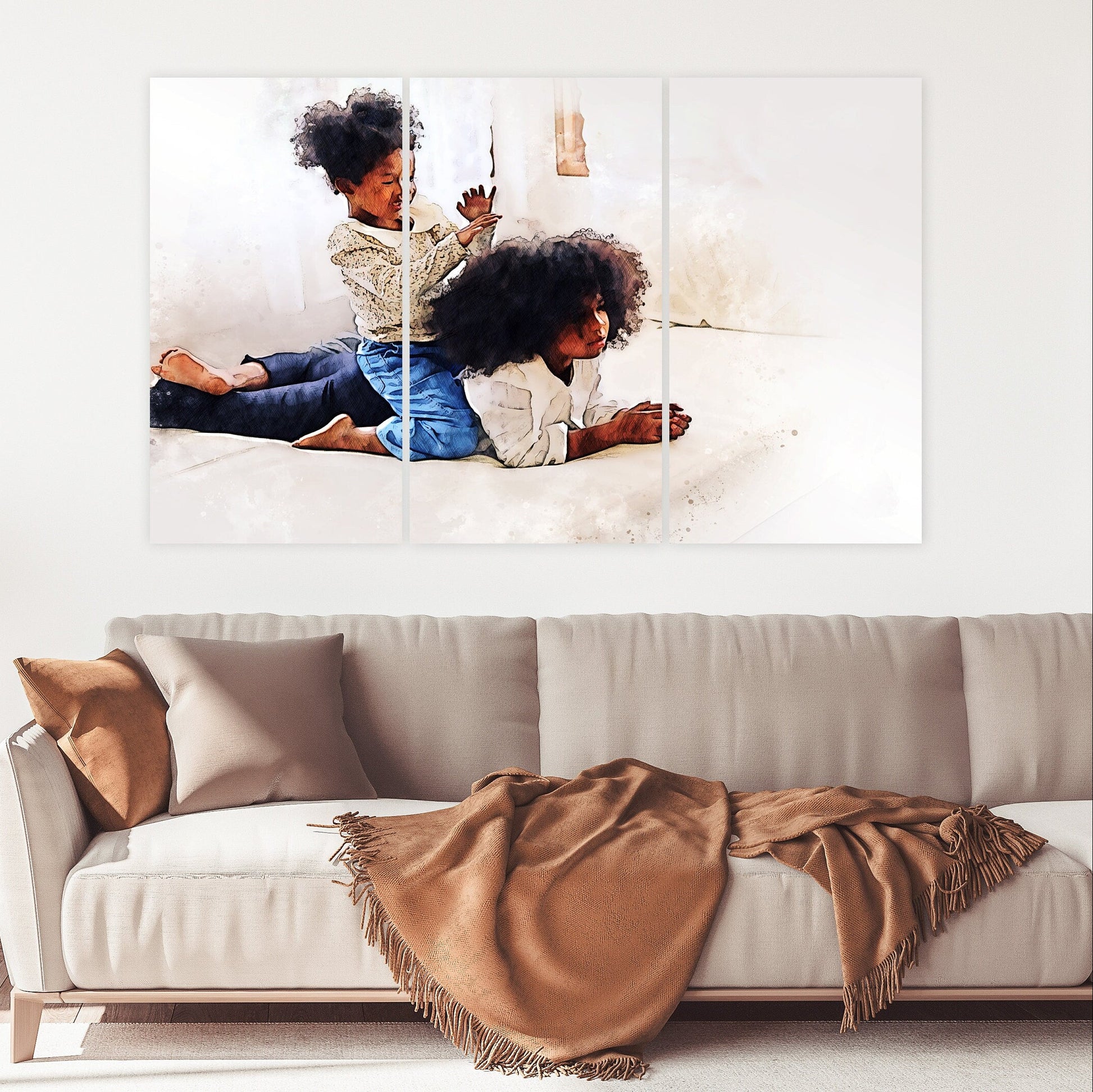 •Die Größe eines Gemäldesets, das aus mehreren Tafeln besteht, wird berechnet, indem die Tafeln zusammengezählt werden. Es wird empfohlen, solche Sets mit einem Abstand von 1–2 Zoll zwischen den Tafeln an der Wand anzubringen. Je größer die Bildelemente sind, desto größer ist der zulässige Abstand zwischen ihnen.