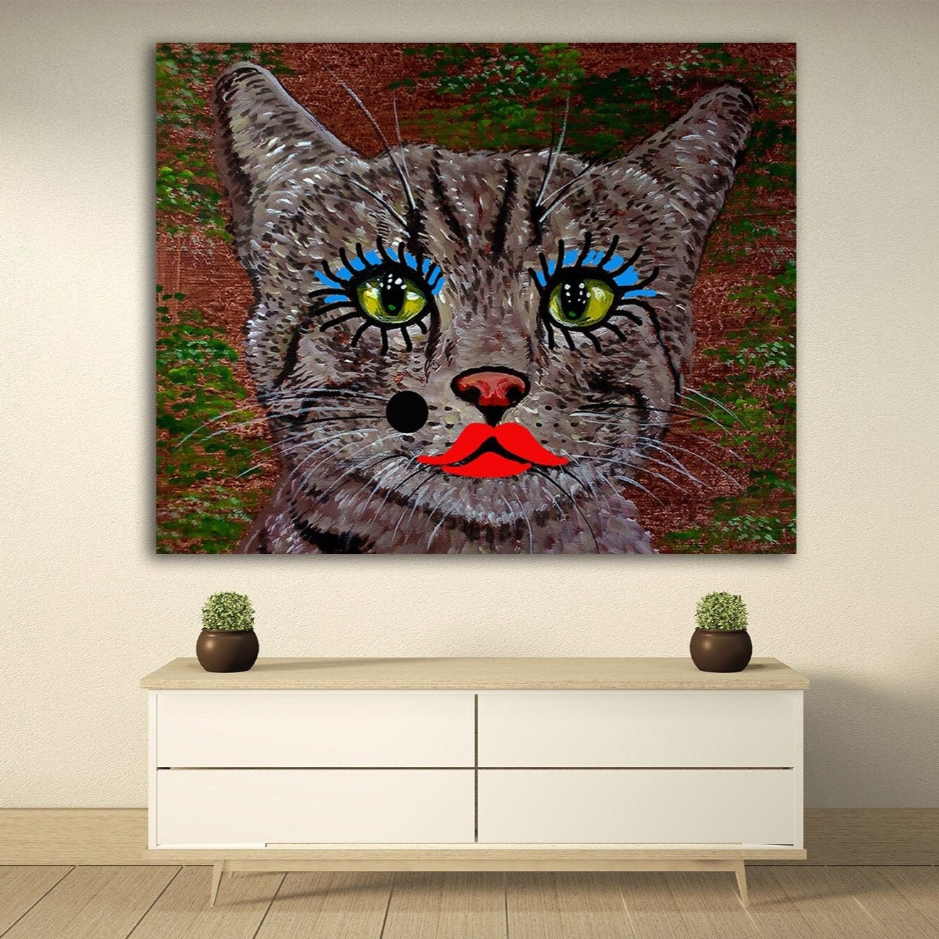 Verrücktes Katzen-Makeup-Ölgemälde, Haustierportrait, Wandkunst, Bauernhaus, Tier-Wanddekoration, Kinderzimmer, extra großes mehrteiliges Leinwandbild