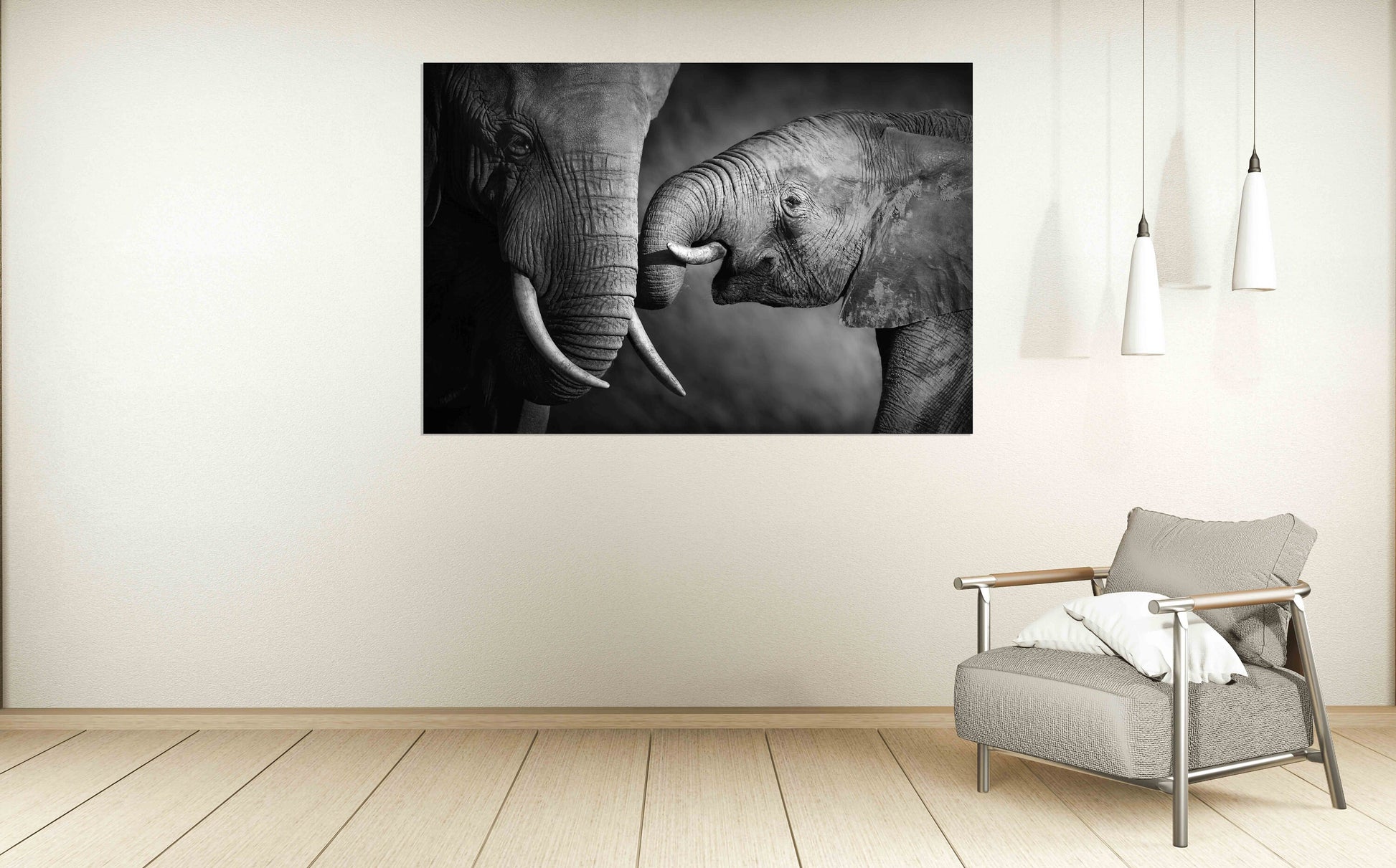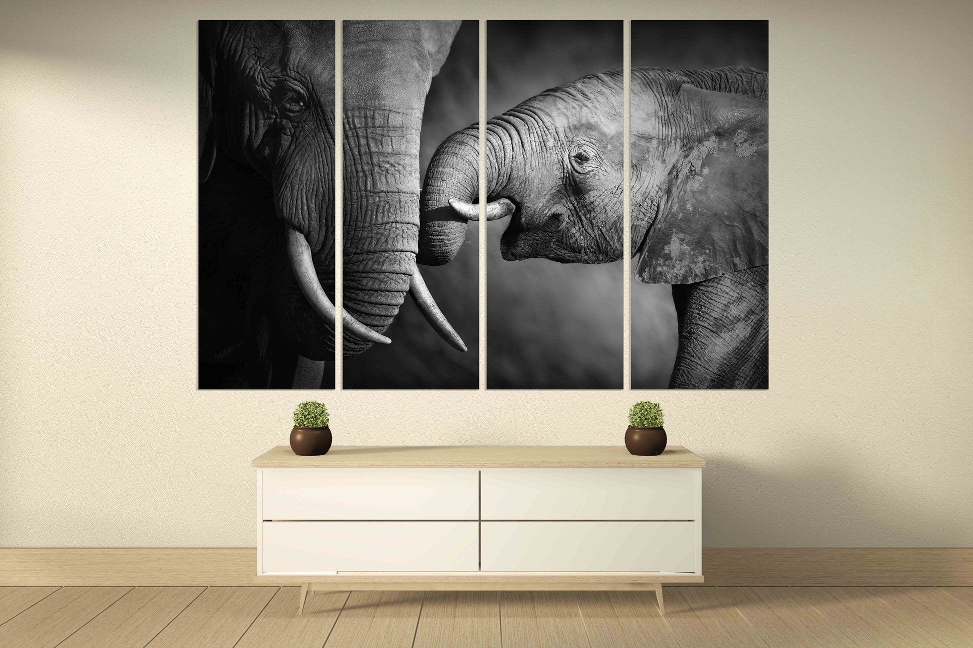 Elefanten-Dekor, Elefantenpaar, afrikanische Leinwandkunst, Schwarz-Weiß-Kunst, Mehrteiliges extra großes Leinwandbild, Wanddekoration für Zuhause