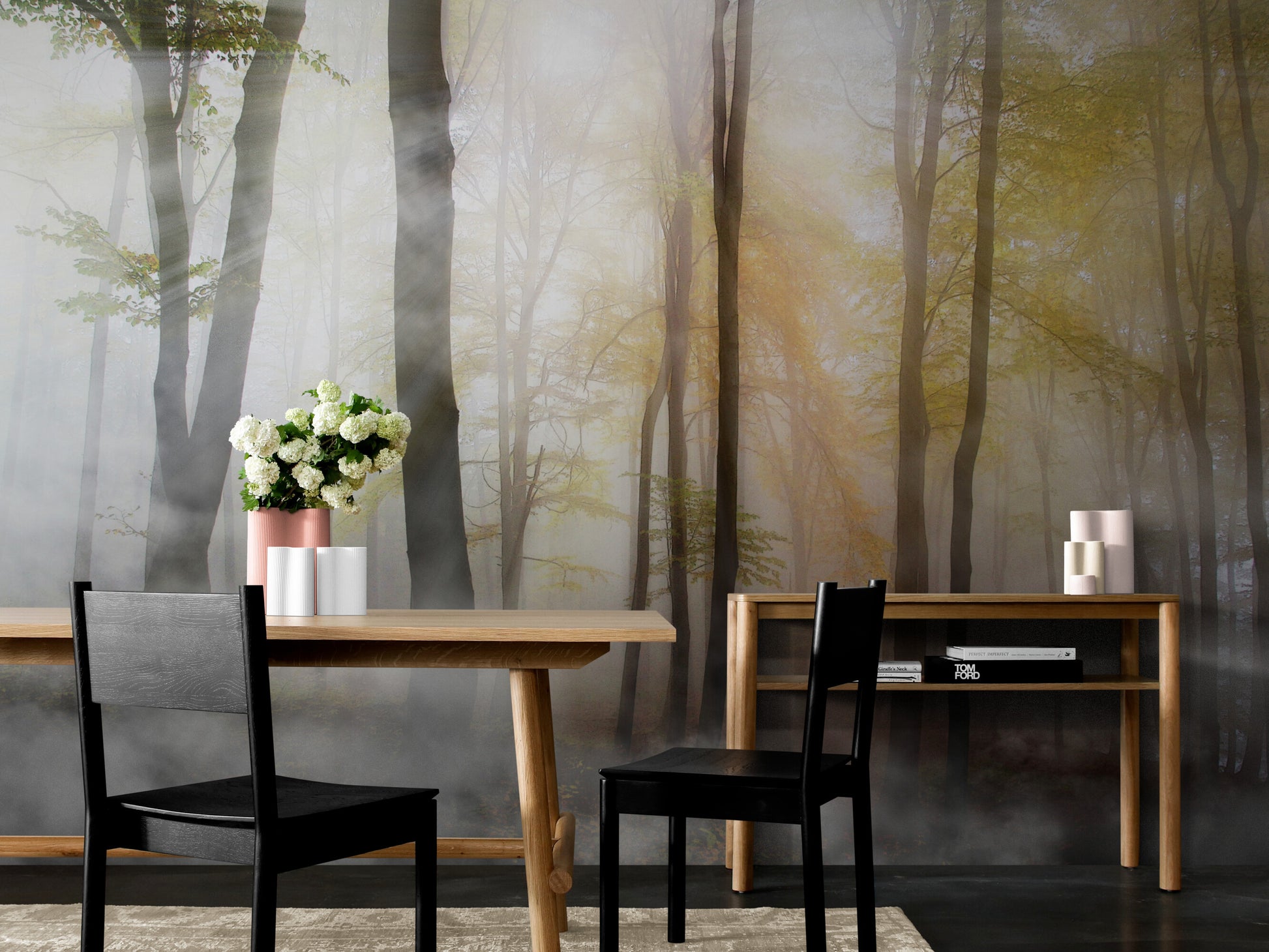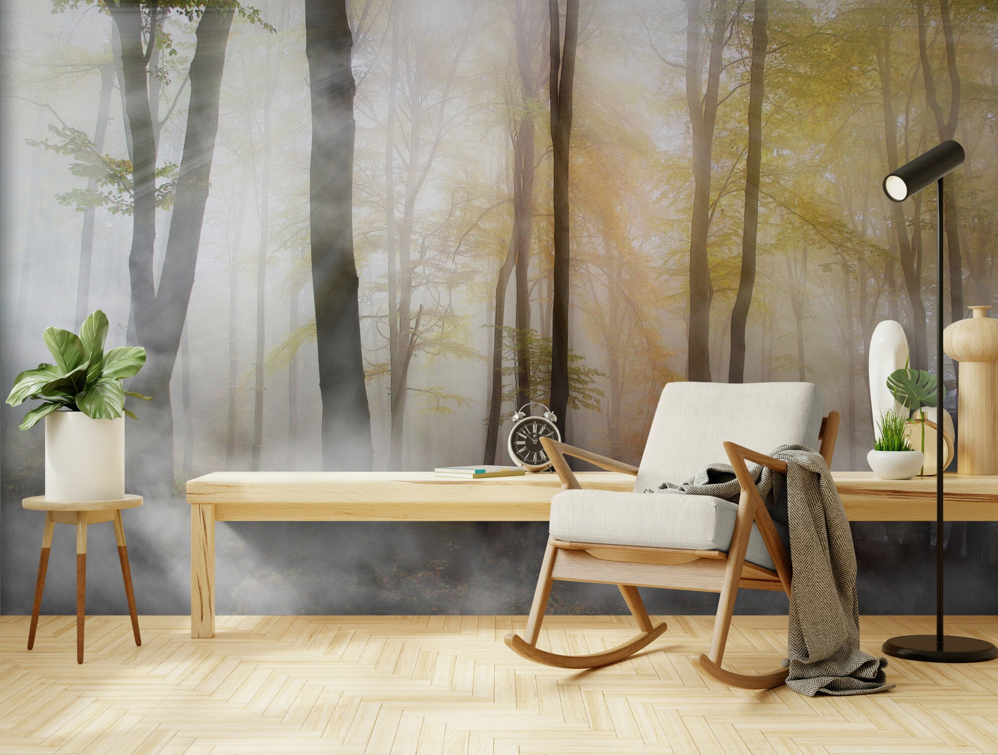 Abziehbare und klebende Tapete mit Waldbild, extra großes Naturwandbild, selbstklebendes botanisches Tapetenwandbild
