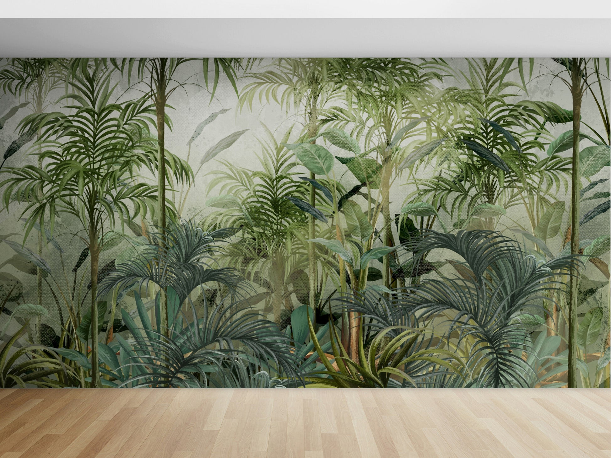 Selbstklebendes tropisches Wandbild, botanisches Abzieh- und Klebetapeten-Wandbild, Akzenttapete mit grünen Pflanzen, abnehmbares Kräuter-Wandbild, extra große Wohnzimmertapete