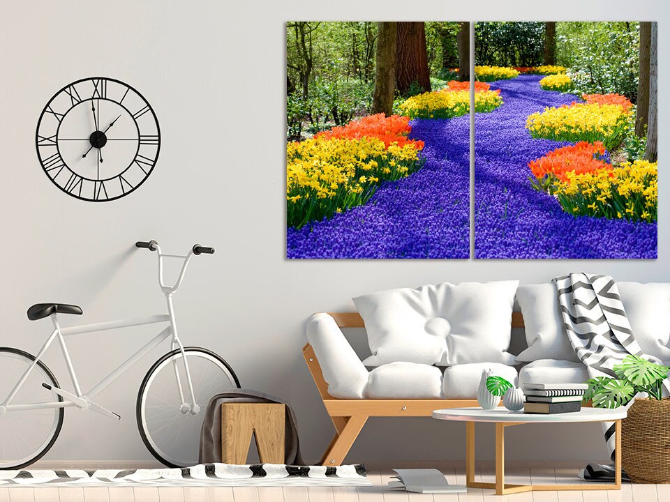 •Die Größe eines Gemäldesets, das aus mehreren Tafeln besteht, wird berechnet, indem die Tafeln addiert werden. Es wird empfohlen, solche Sets mit einem Abstand von 2,5–5 cm zwischen den Paneelen an der Wand zu platzieren. Je größer die Bildelemente, desto größer ist der zulässige Abstand zwischen ihnen.