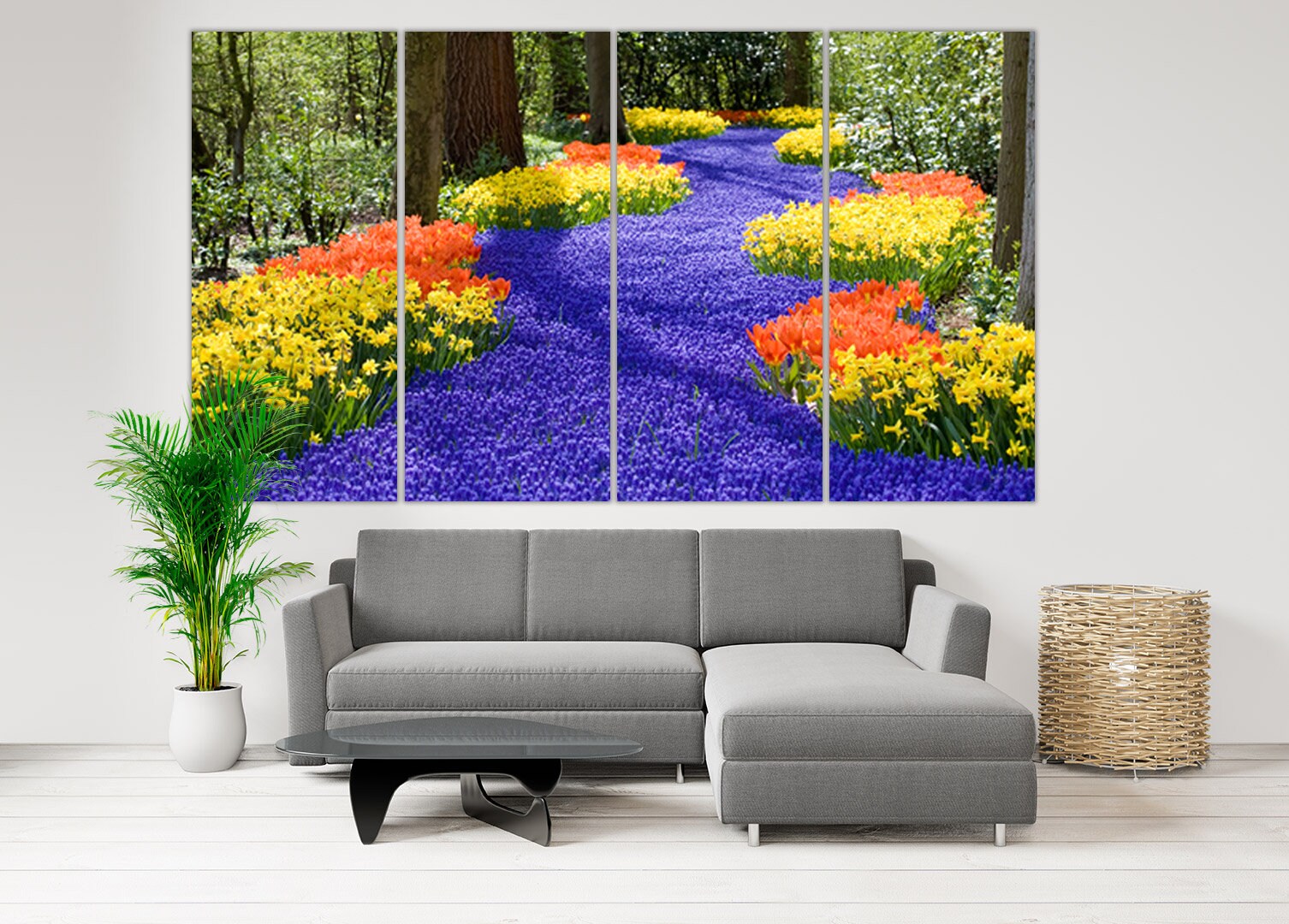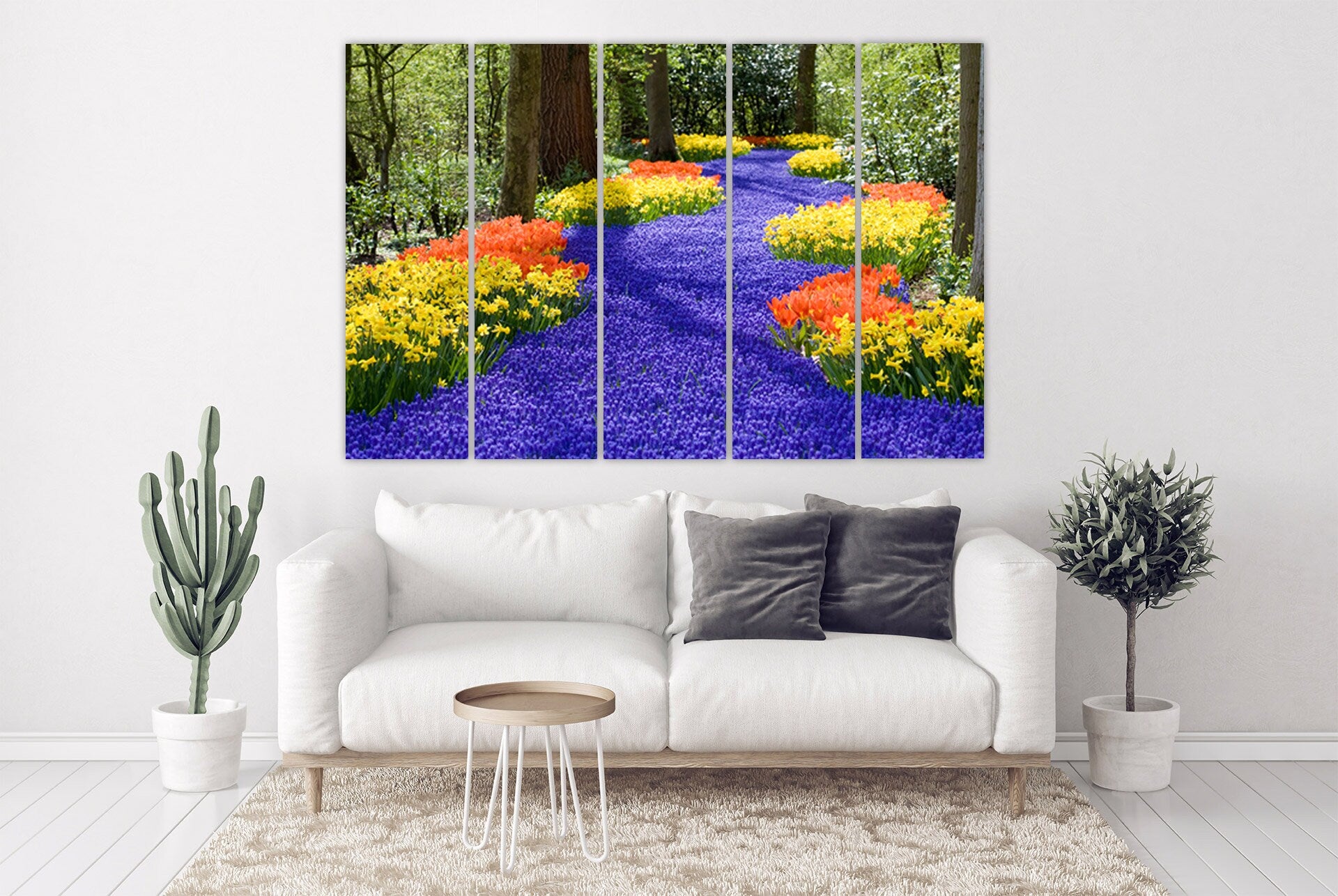 Blumen-Wanddekor-Gemälde auf Leinwand, Naturmalerei, Wohnwanddekor, Holzwandkunst, mehrteilige Wandkunst, Landschaftsmalerei-Drucke