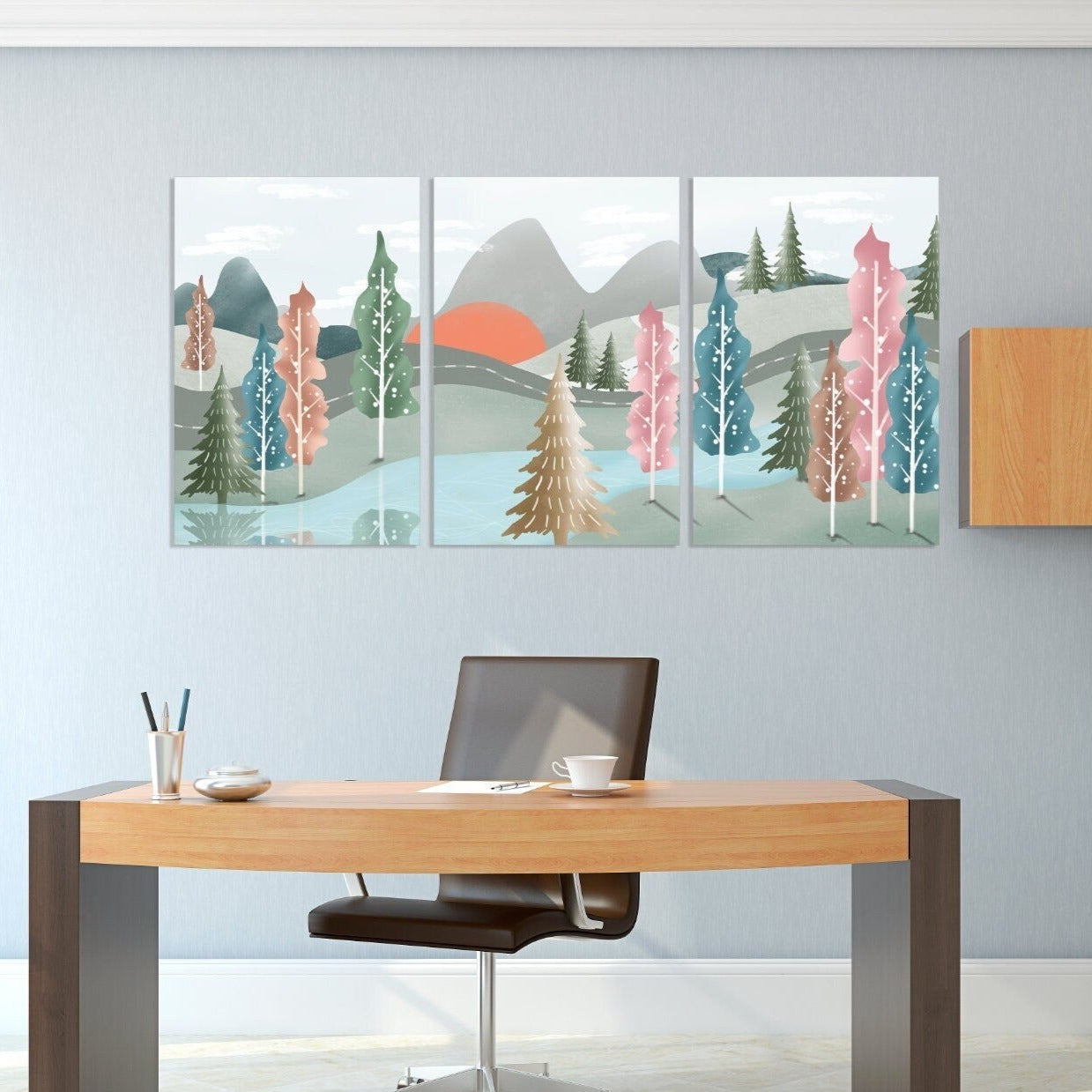 Waldgrünes Leinwandgemälde, Heimwanddekoration, 3-teiliges Rahmenbild, weiße Birkenwald-Wandkunst, mehrteilige Leinwand