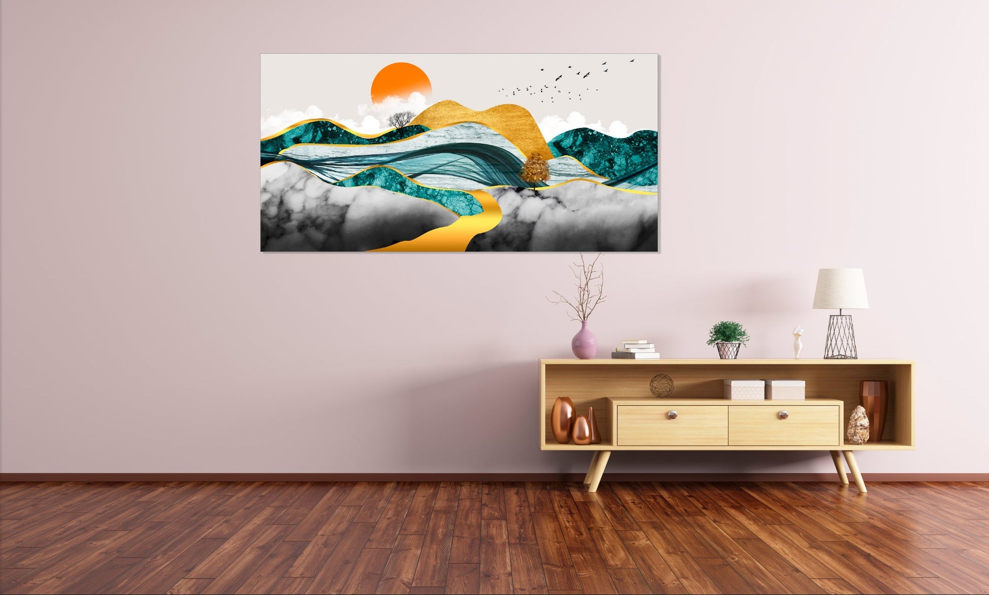 Goldene Berge Wandkunst Abstraktes gerahmtes Leinwandgemälde Wandbilder Berge Natur Wandkunst Schlafzimmer Wanddekoration Bergkunstdruck