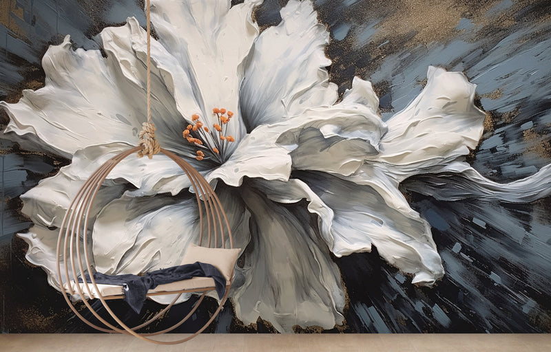 Extra große Blumentapete, weißes Blumenwandbild zum Abziehen und Aufkleben, abnehmbare botanische Tapete, selbstklebendes Blumenwandbild mit 3D-Effekt