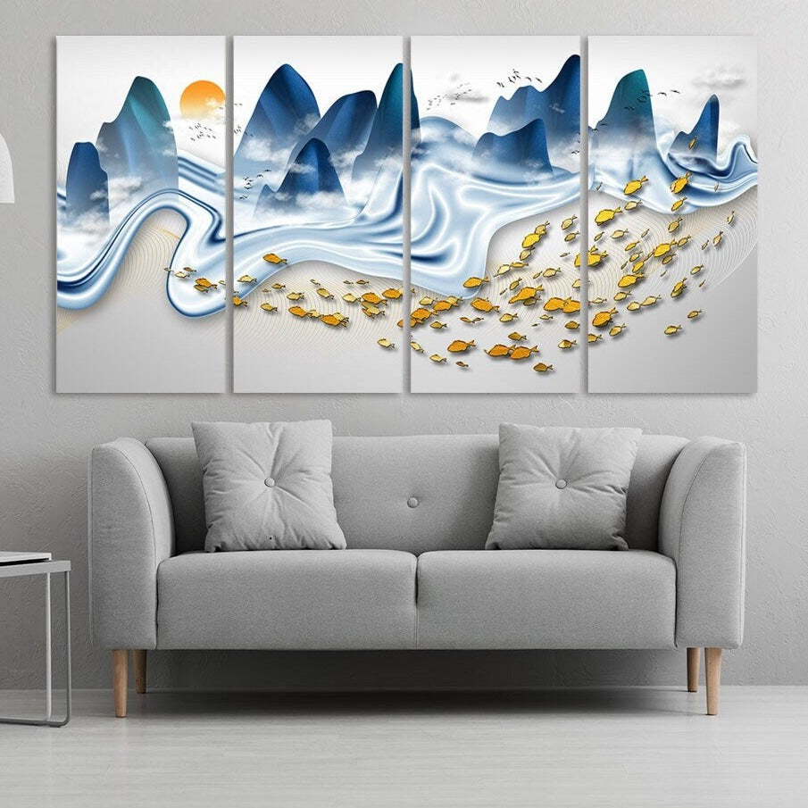 Goldfisch Druck Gapanese Wandkunst Berg Wandtattoa Blue Ridge Mountains Line Art Wanddruck Modernes abstraktes Leinwandgemälde