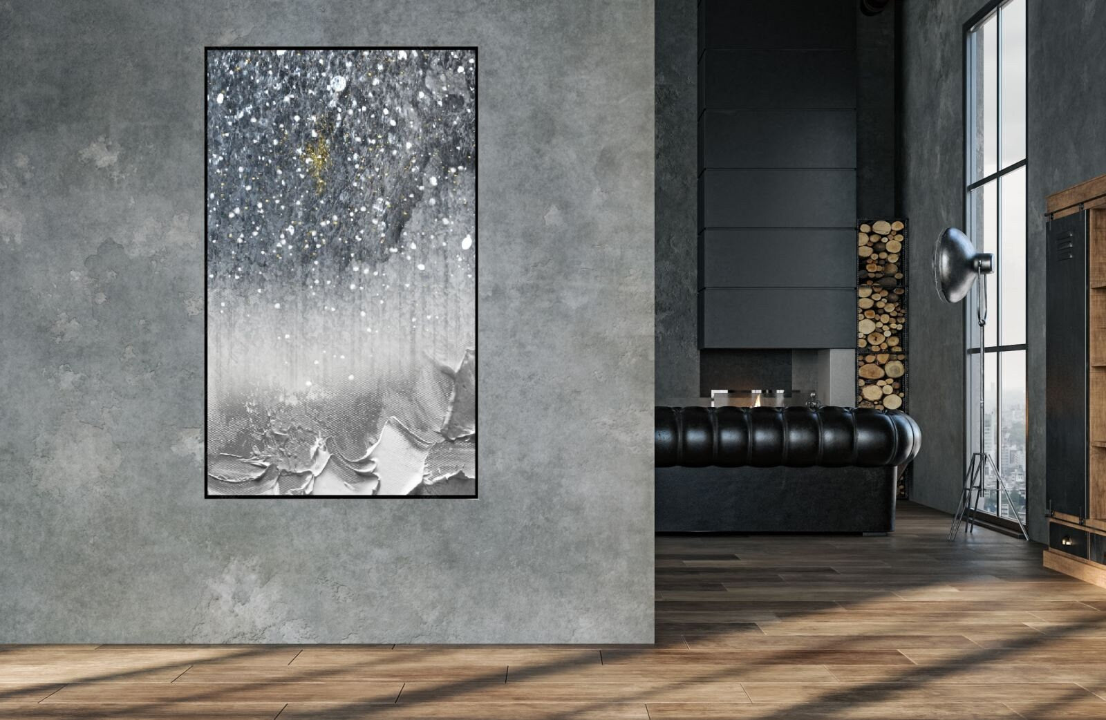 Graue abstrakte gerahmte Wandkunst, druckbares Kunstwerk im schwebenden Rahmen, extra große zeitgenössische Leinwand-Wandkunst im schwebenden Rahmen als Geschenk