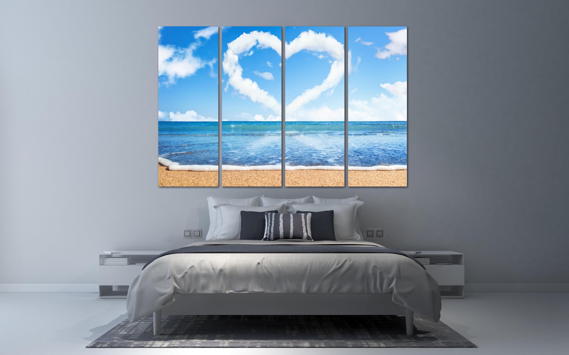 Herz-Wand-Dekor, Liebes-Wand-Kunst-Gemälde auf Leinwand, Valentinstag-Geschenk, Meereslandschaft-Gemälde, blaue Himmel-Wand-Kunst, Liebesbild