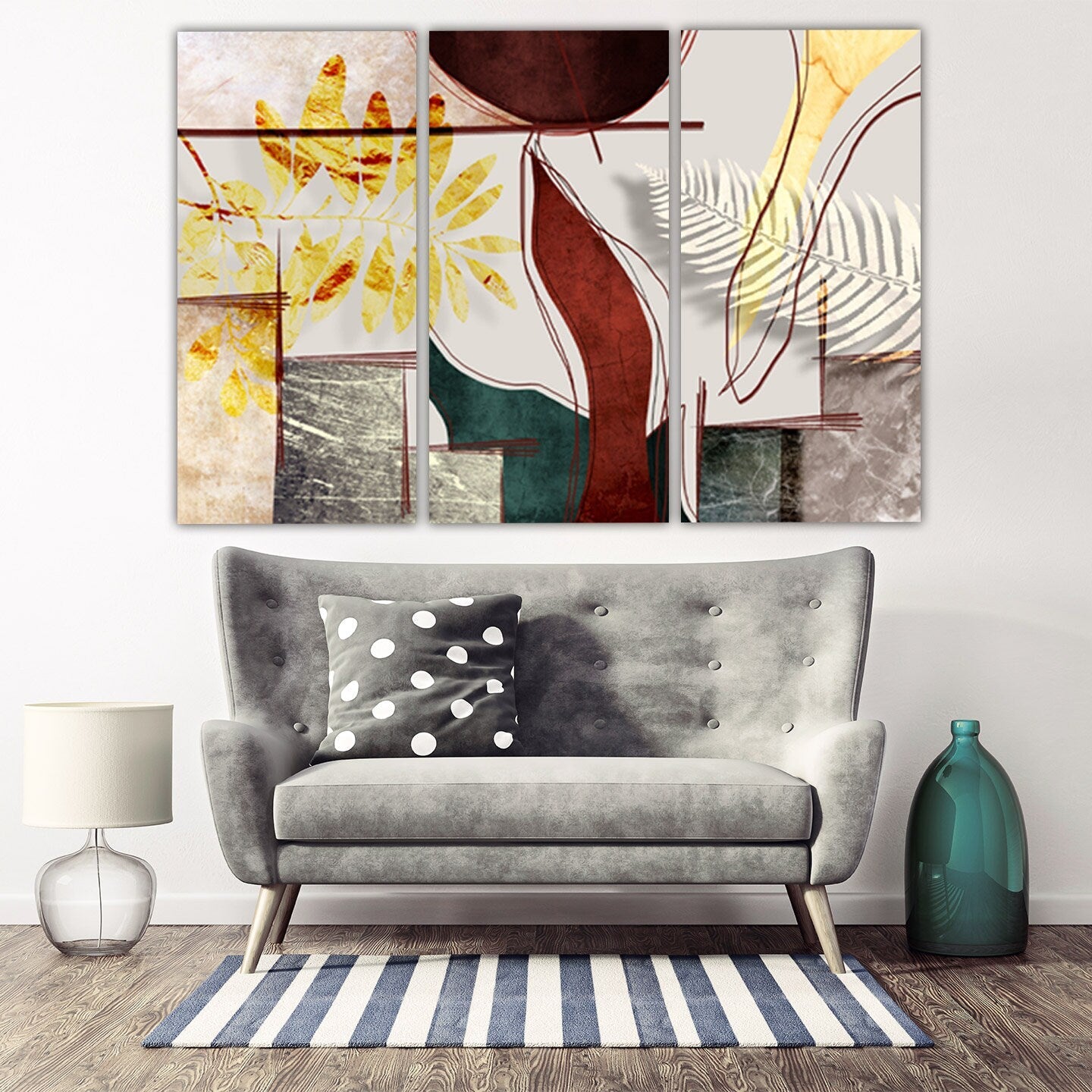 Kräuterdrucke moderne abstrakte Wandkunst Gemälde auf Leinwand Blätter Wandkunst Geometrische Wandkunst