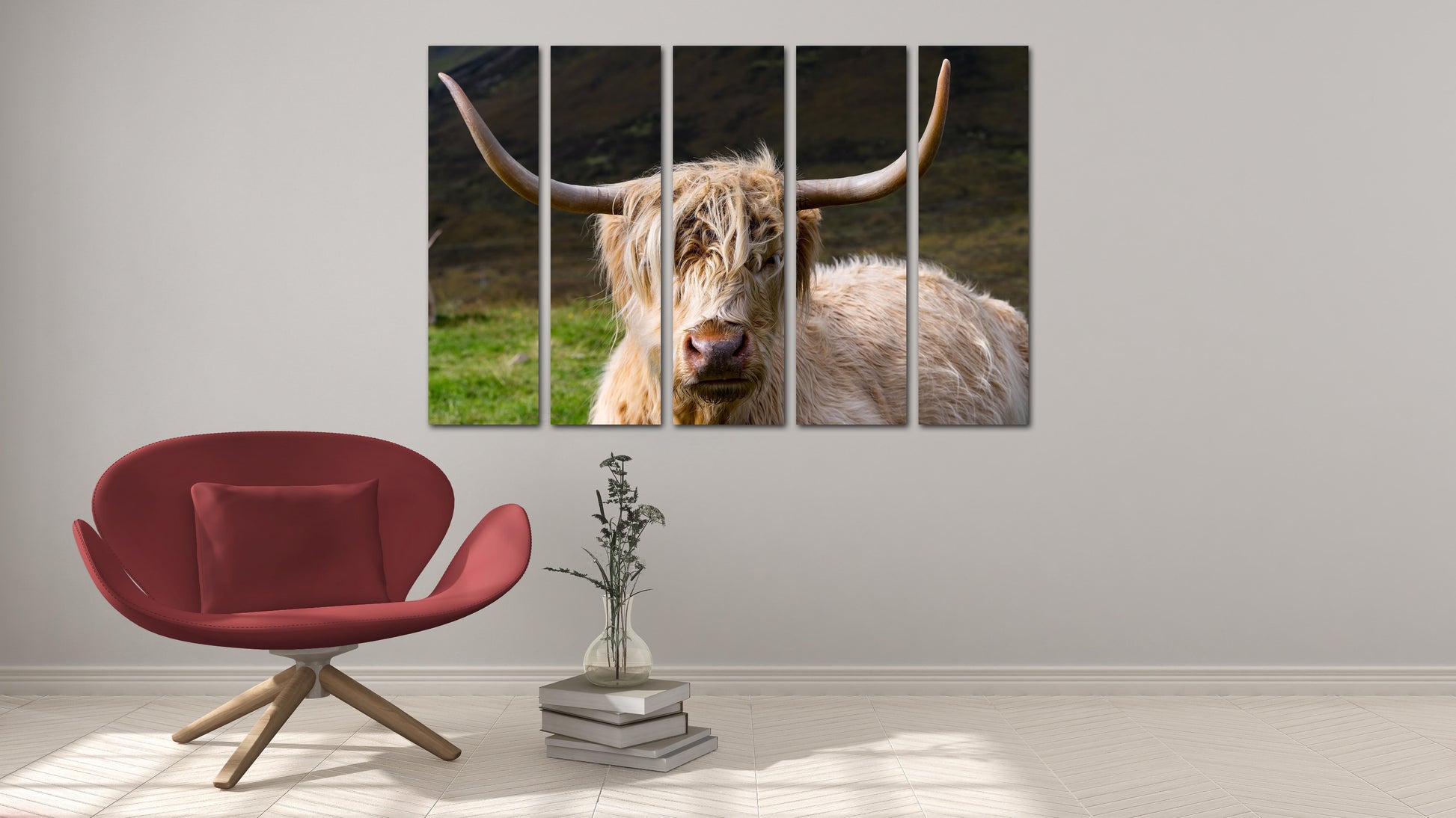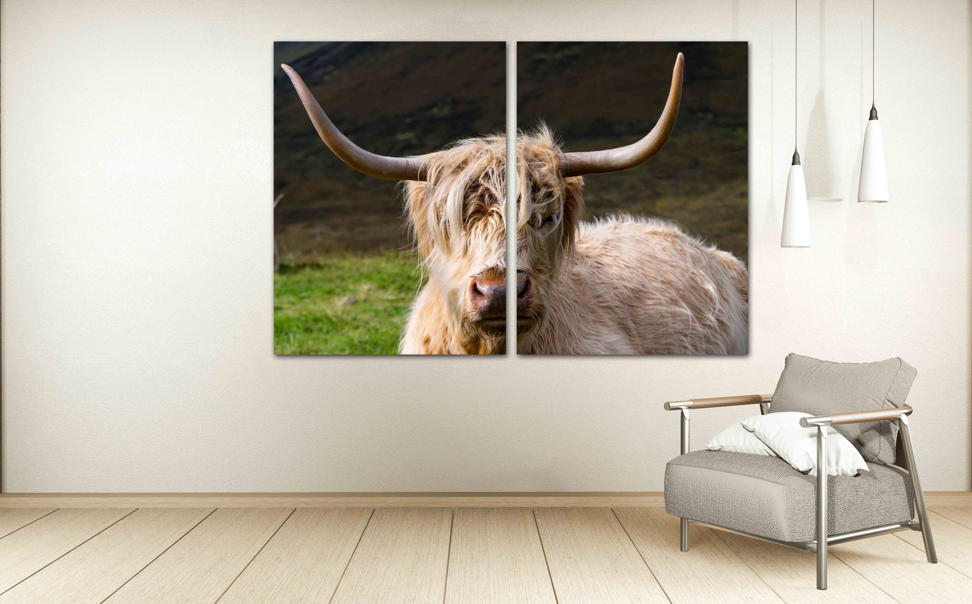 Wanddekoration für Zuhause, mehrteiliges, extra großes Leinwandbild, Wandkunst mit Rindern, Waldtierfiguren, Büffelsilhouette, Leinwanddruck