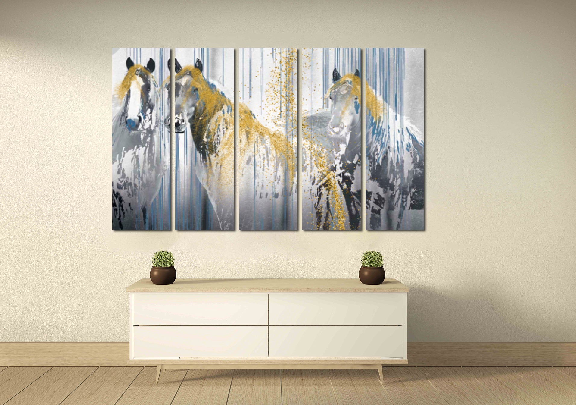 Pferde-Wandkunst. Erstaunliche handgezeichnete Pferdegemälde auf Leinwand. Wohnwanddekor. Leinwandgemälde. Pferd. Druckbare Kunst. Große Leinwandkunst.