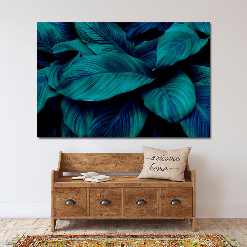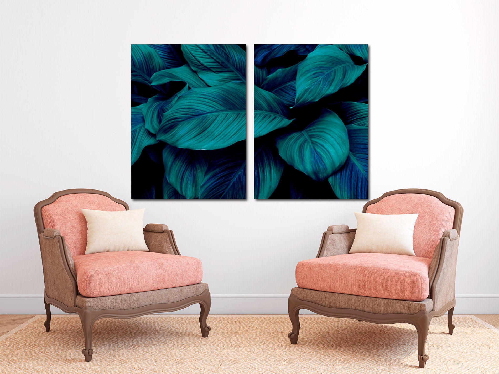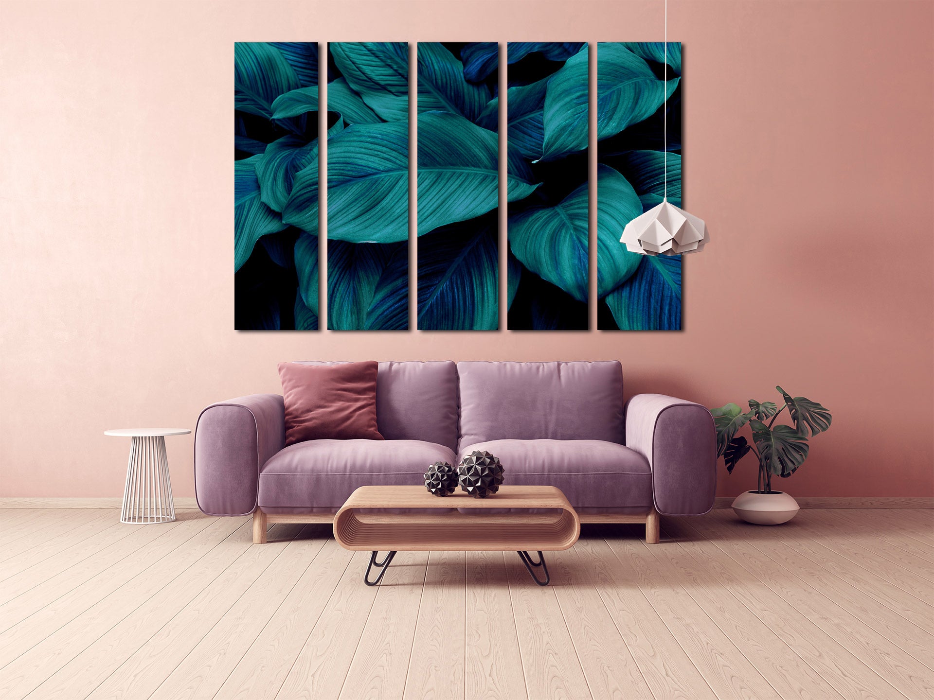 Riesige Wandkunstgemälde mit tropischen Blättern auf Leinwand, Wanddekoration für das Bauernhaus, Leinwandgemälde, florale Leinwandwandkunst