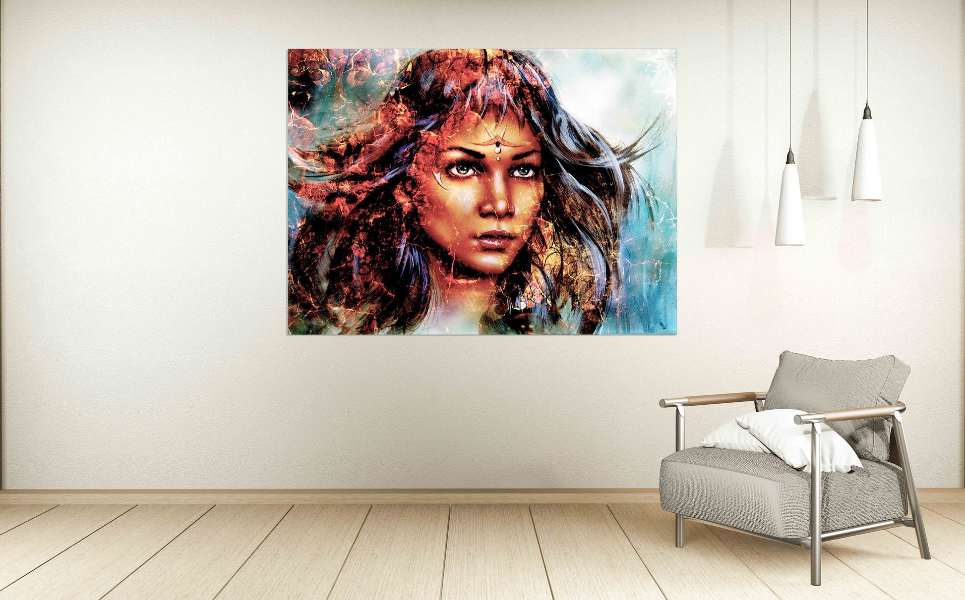 Indische Leinwandkunst, indische Frau, Kunst, mehrteiliges extra großes Leinwandbild, Native Indian Poster, gerahmter Kunstdruck