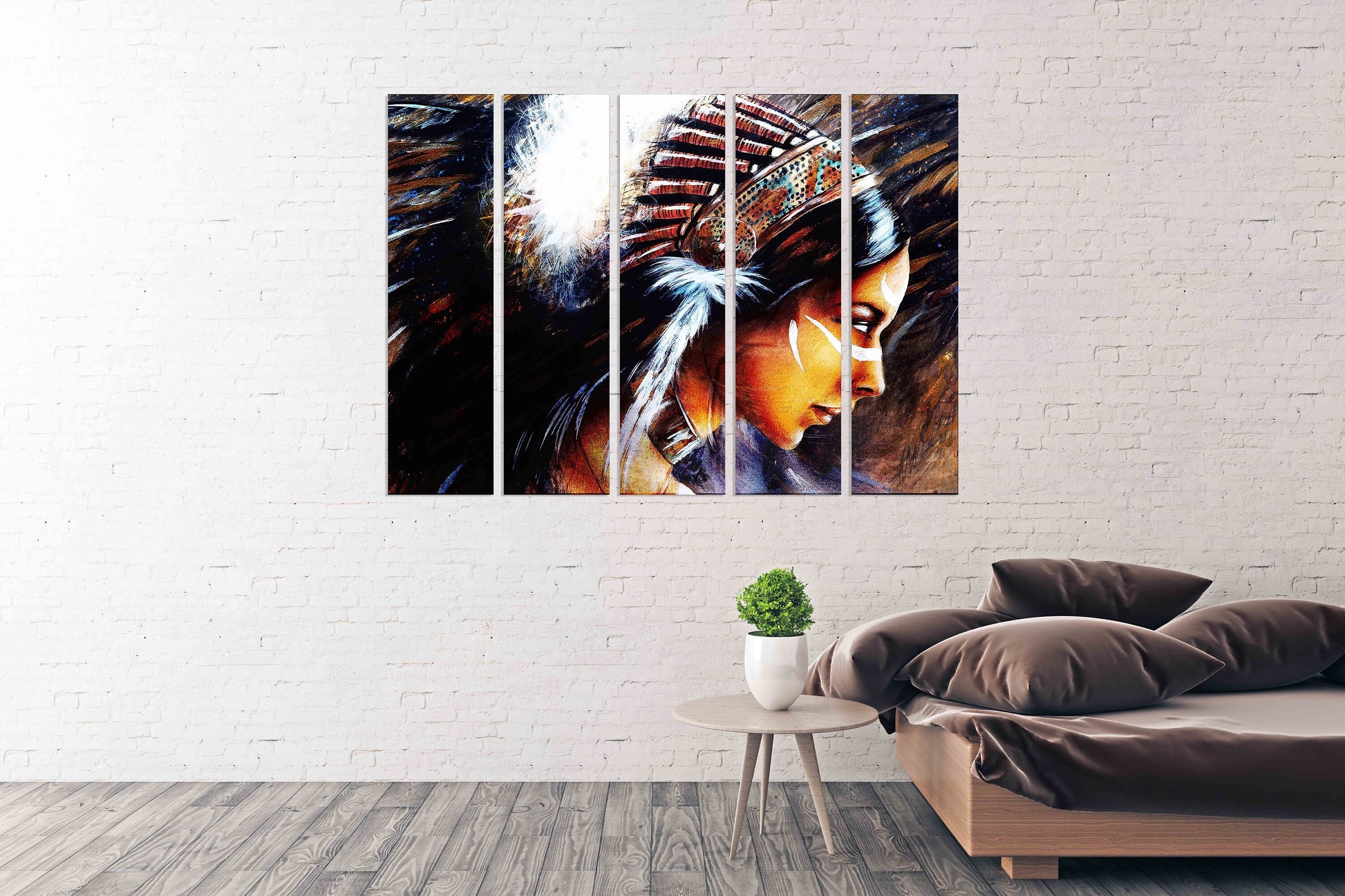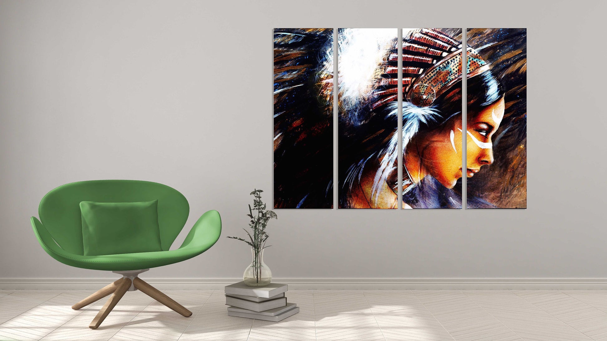 Indische Malerei, Wanddekoration, mehrere Panele, extra große Leinwandkunst, Gemälde „Wonder Woman Girl“, Gemälde auf Leinwand, Federn im Stil