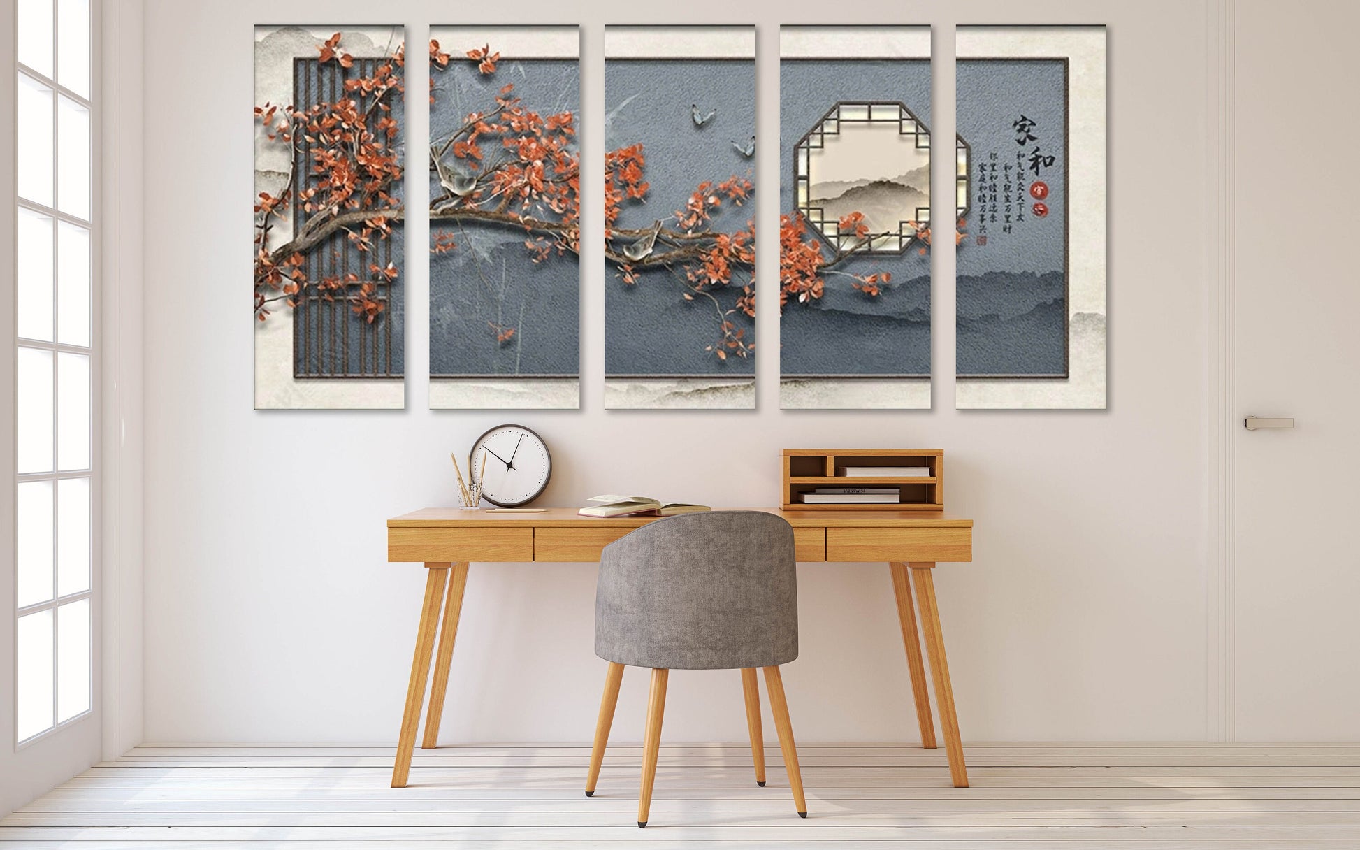Japanischer Leinwanddruck, großes asiatisches Wandbild, Kirschblüten-Kunstwerk, dreiteiliges Wandbild, mehrteiliges Schlafzimmer-Kunstwerk, Geschenk zur Wohnungserwärmung